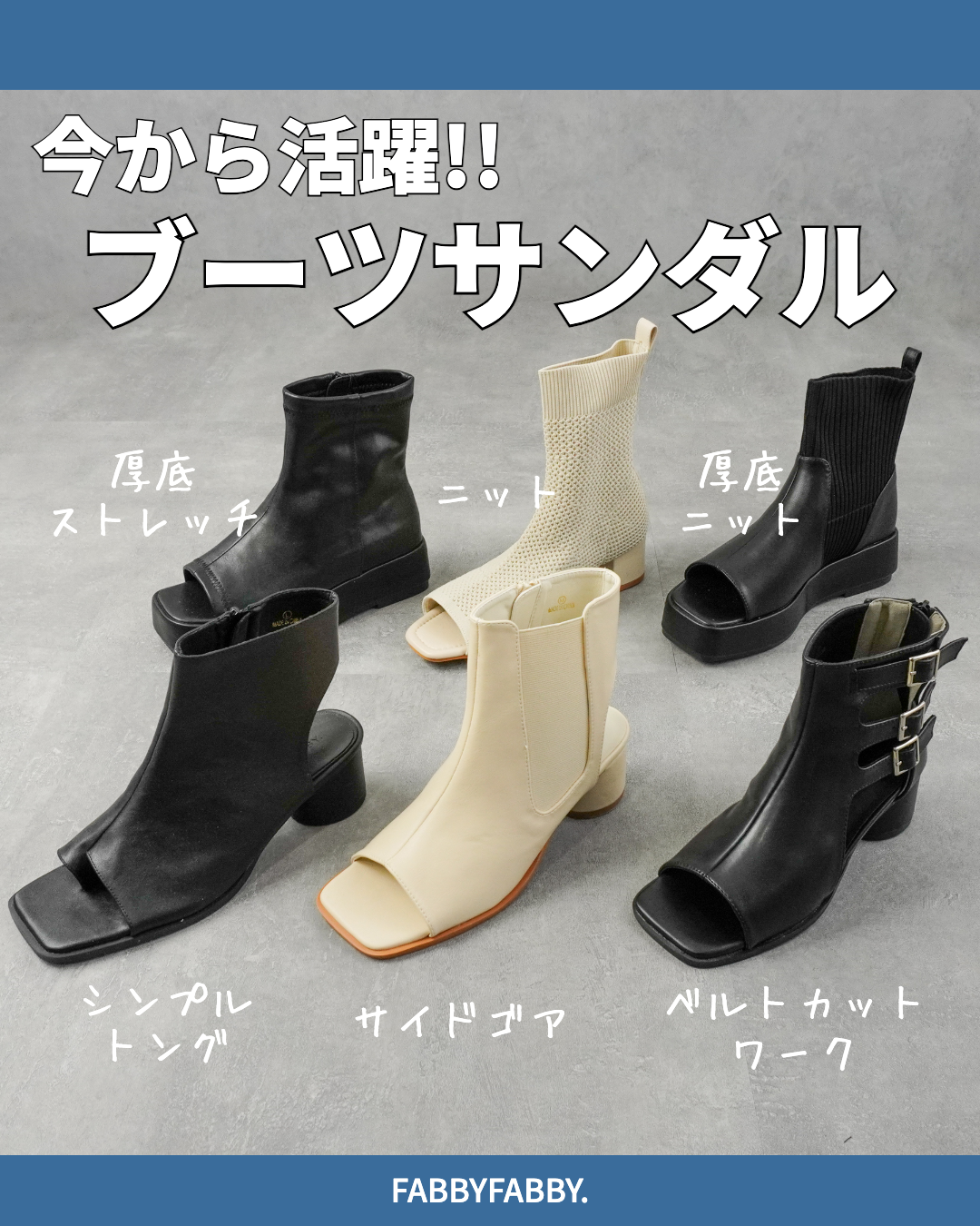 サイドゴアデザインが今年っぽいトングブーツサンダルもかわいい!