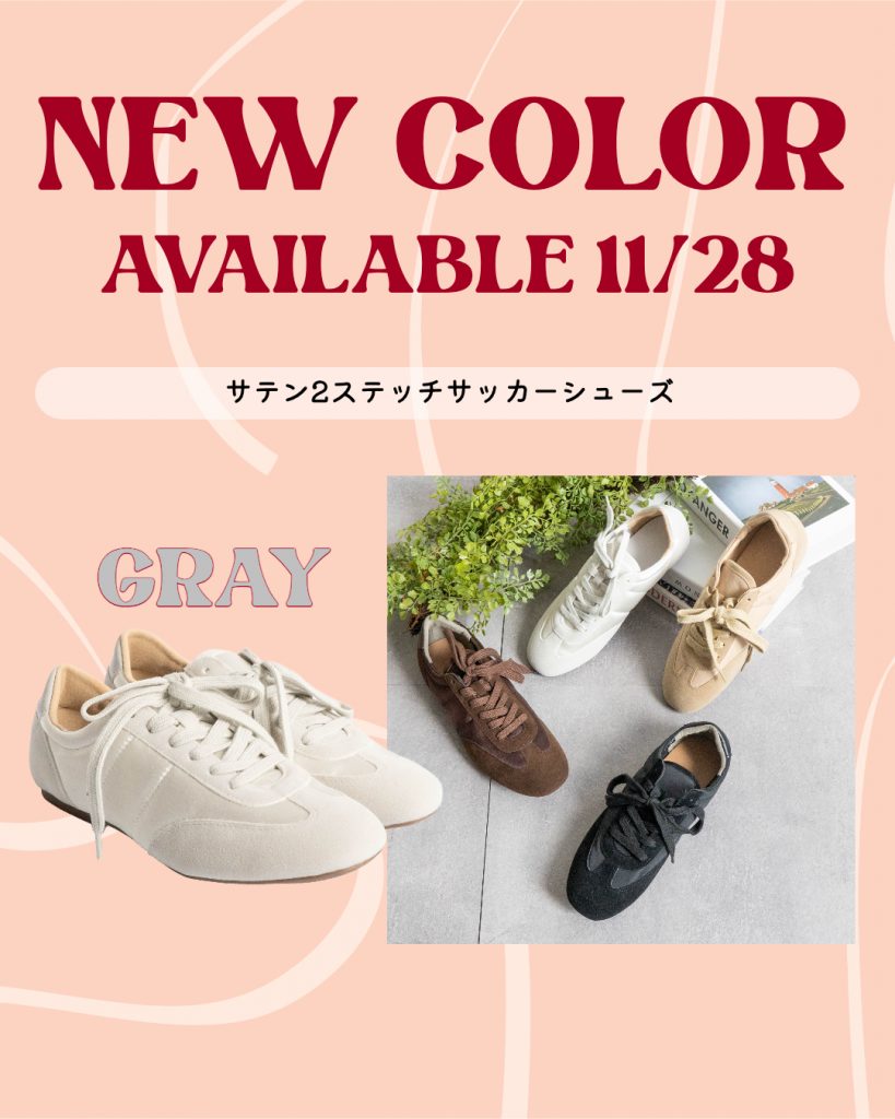 落ち着きカラーの“グレー”が仲間入り。スポーティなのに普段使いもしやすくて、コーデの抜け感づくりにちょうどいい一足。