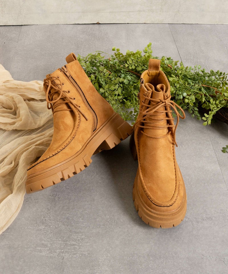 レースアップスエードタンクソールショートブーツ/レディース/fabby fabby(ファビーファビー)/54701A