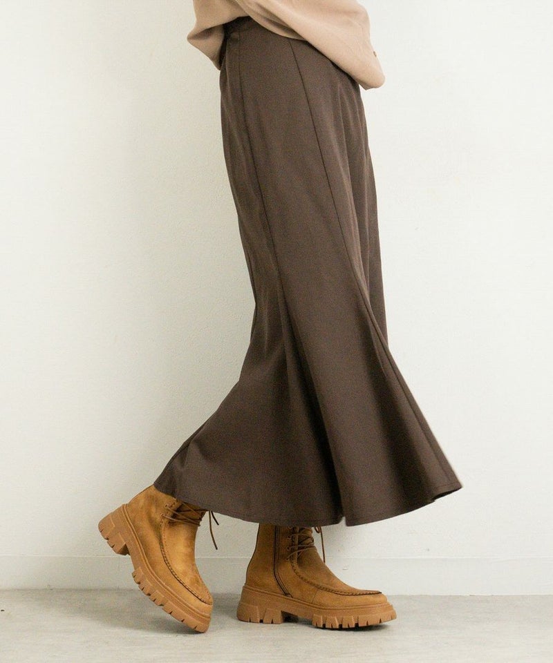 温かみのあるスエード生地ブーツで秋冬コーデをかわいくガーリーに。