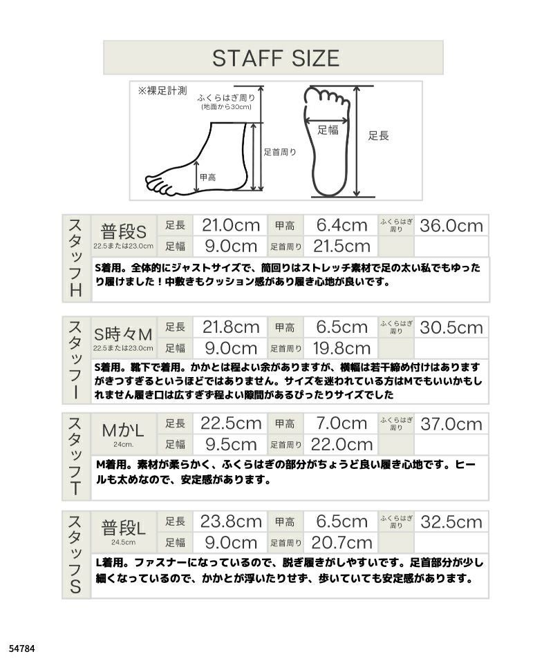 ブーツ丈 S(32cm), M(33.5cm), L(34.5cm) 筒周り S(35.5cm), M(36.5cm), L(38.5cm)