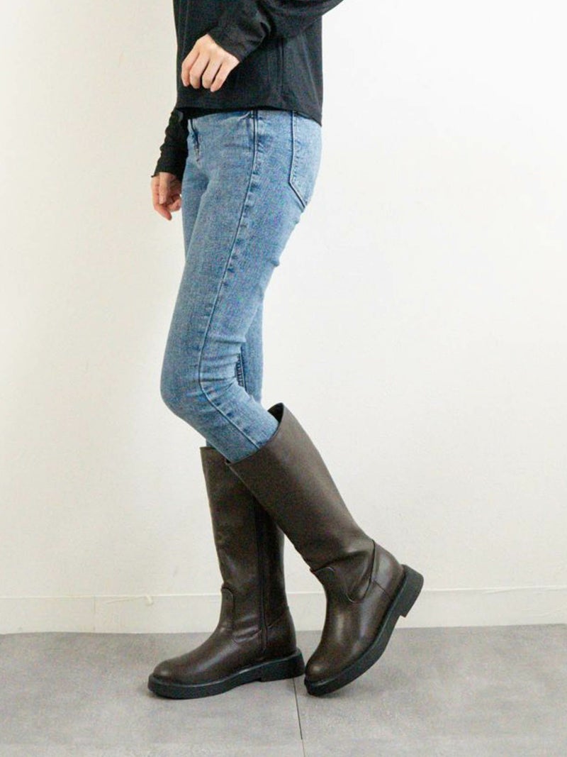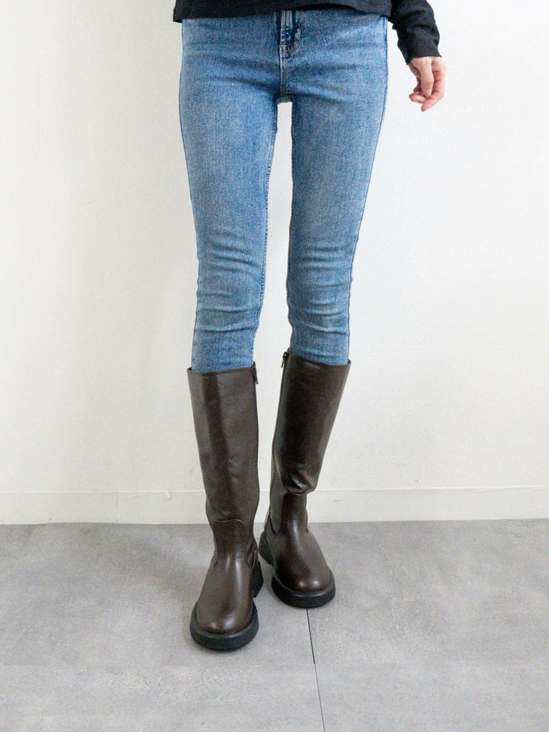 サイドファスナーでスキニーインがしやすい仕様になっています。
