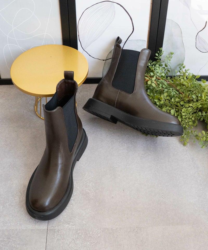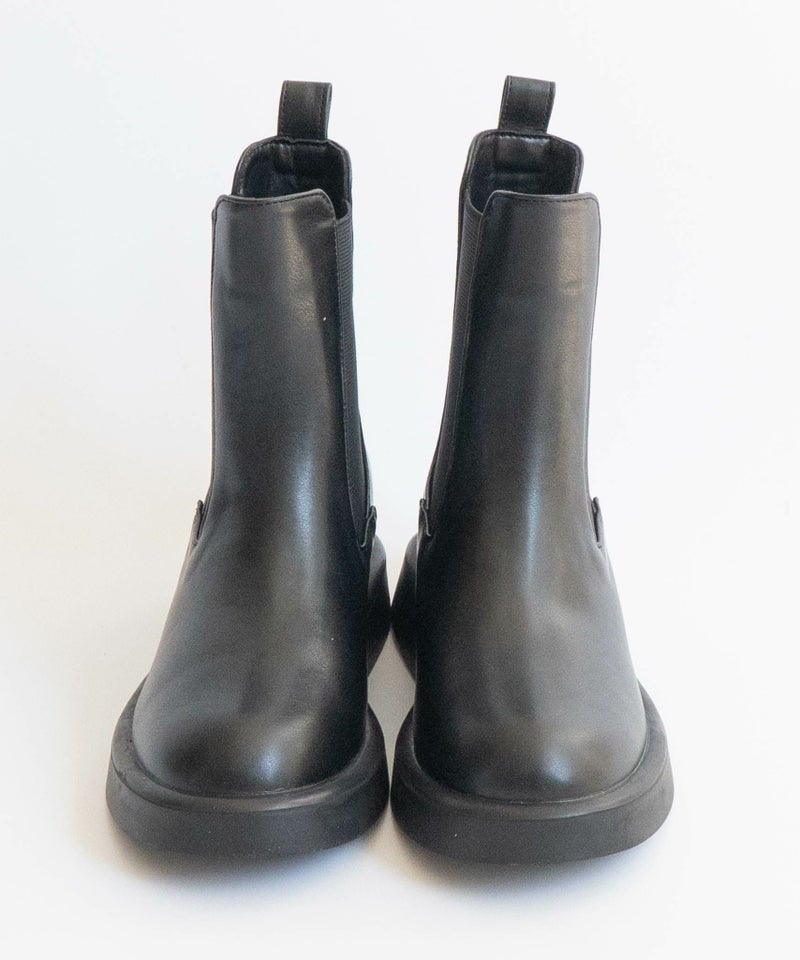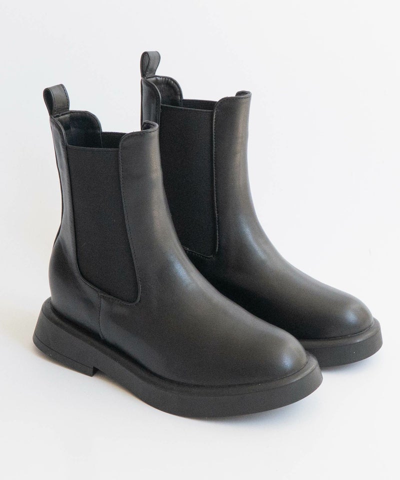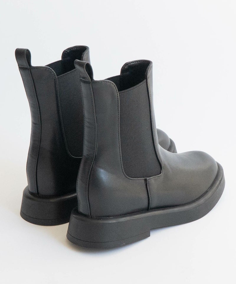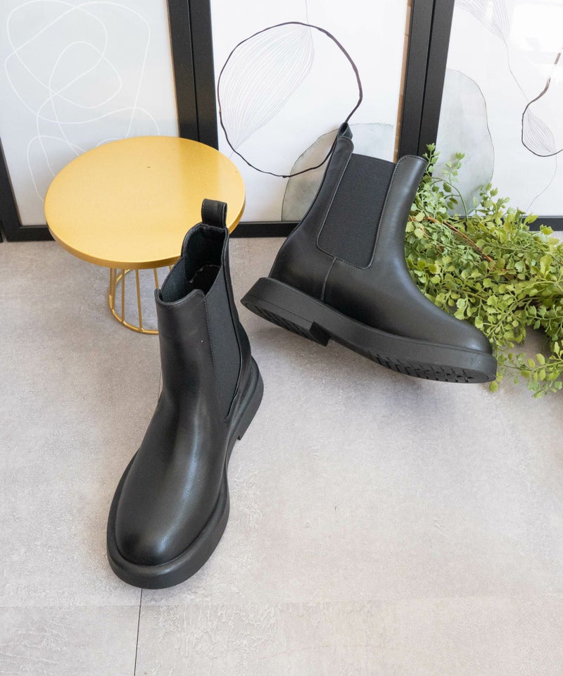 ワントーンで統一されたPU素材が上品さも演出してくれる今季毎日履きたいショートブーツです。