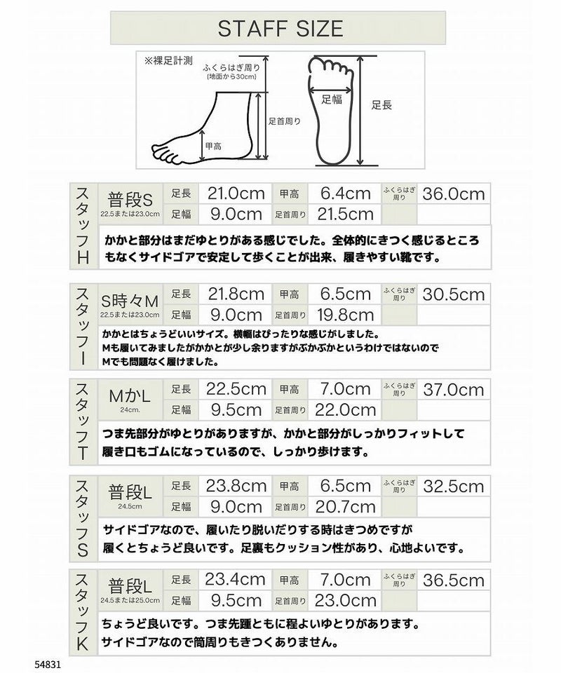 底幅 S(10.5cm) M(10.5cm) L(10.7cm) 足長 S(26.6cm) M(27.4cm) L(28.5cm)