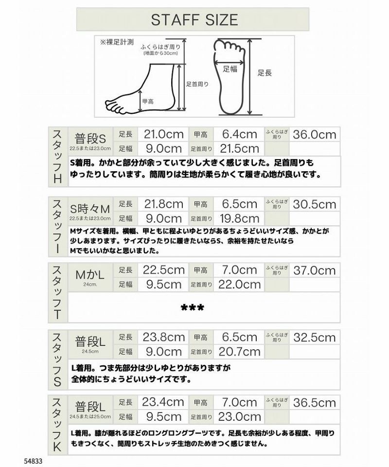 ブーツ丈 S(49.5cm) M(50cm) L(51cm) 筒周り S(36.8cm) M(37.6cm) L(38.6cm)