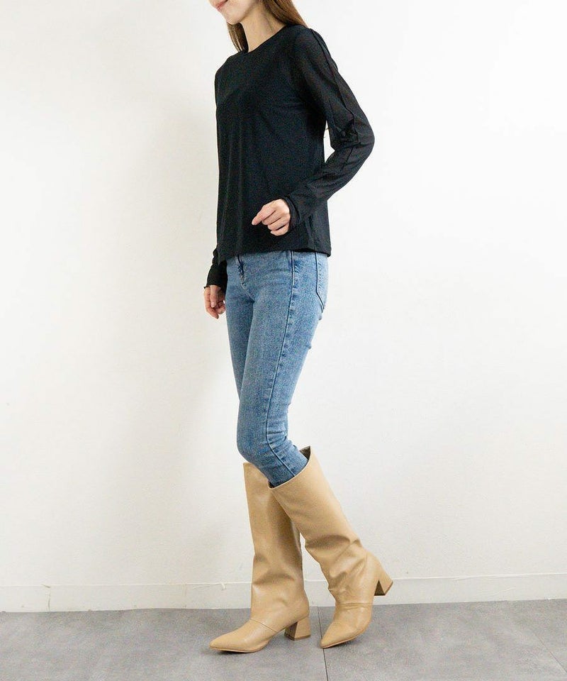 筒周りが広めなので脱ぎ履きもしやすく、スキニーインもばっちり!