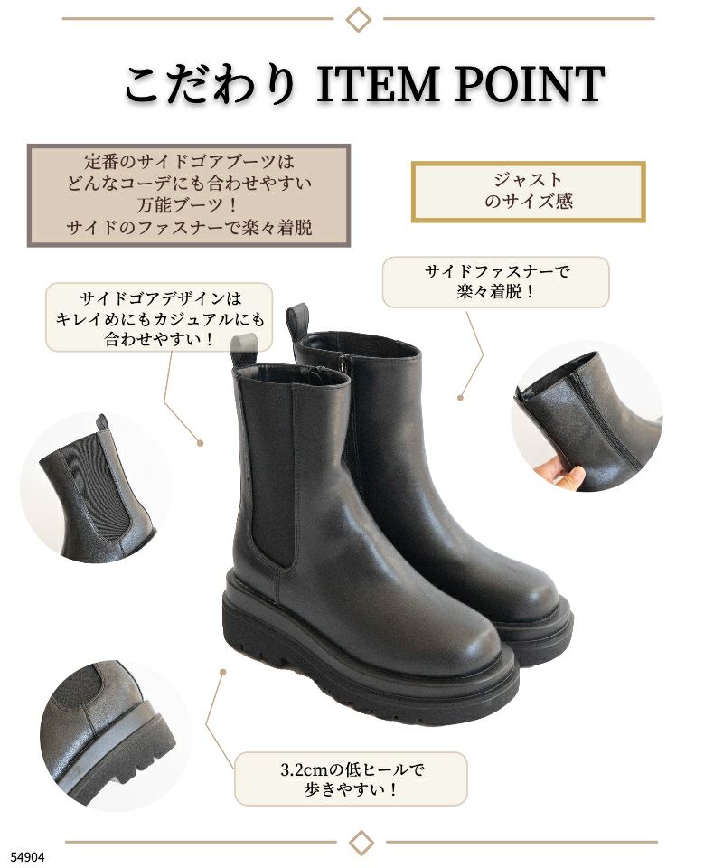 【サイドゴアミドルブーツ】