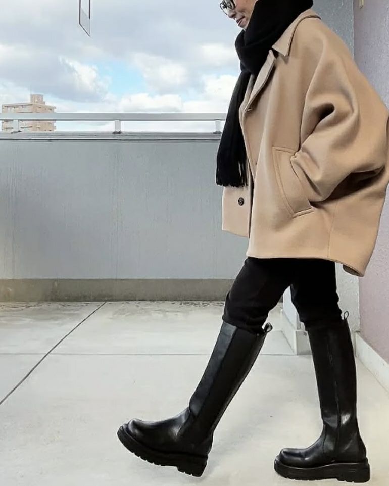 ブーツの高さを活かして美脚効果を狙ったフェミニンコーデもおすすめ♪