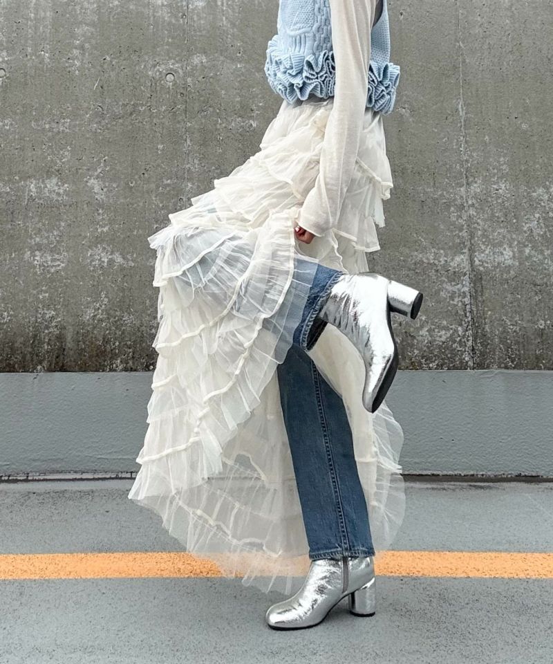 コートやダウンジャケットに合わせて、寒い季節にぴったりなコーディネートに。ショートブーツの丈感が、アウターとのバランスが良く、スタイリッシュさをキープします。