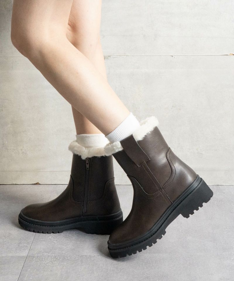 履き口の内側にふんわりボアをあしらった、あたたかさとすっきり感を兼ね備えたショートブーツ。