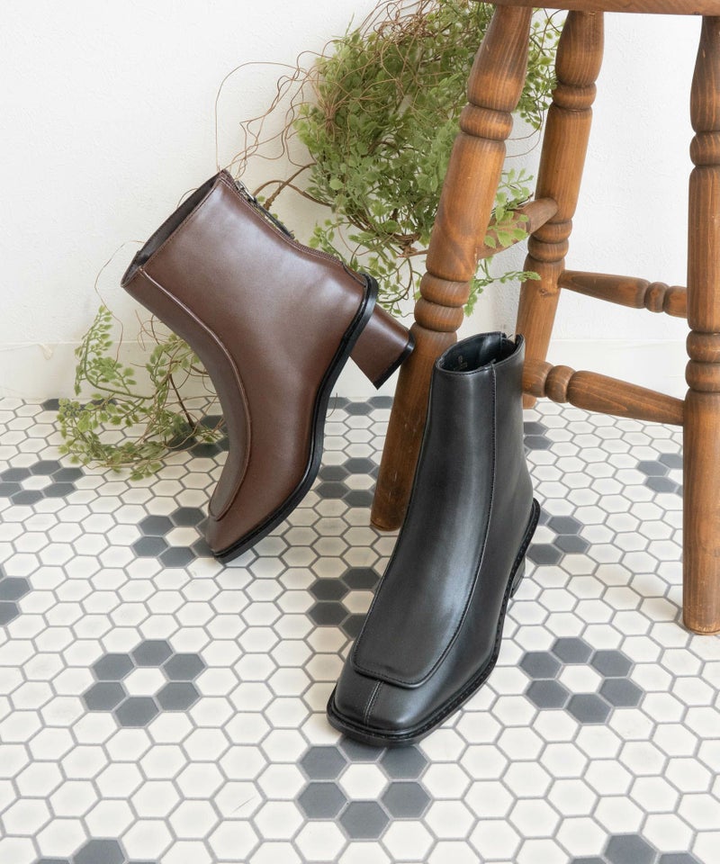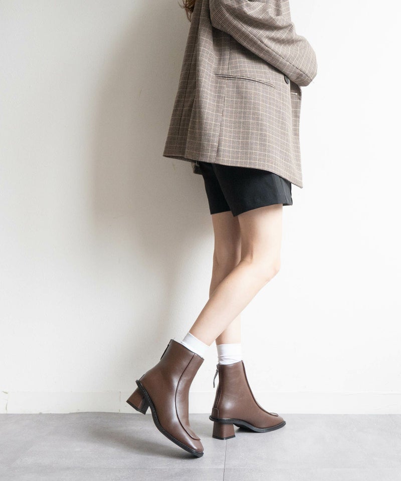 スクエアトゥバックファスナーショートブーツ/レディース/fabby fabby(ファビーファビー)/54981