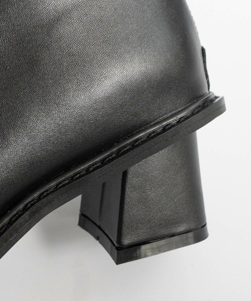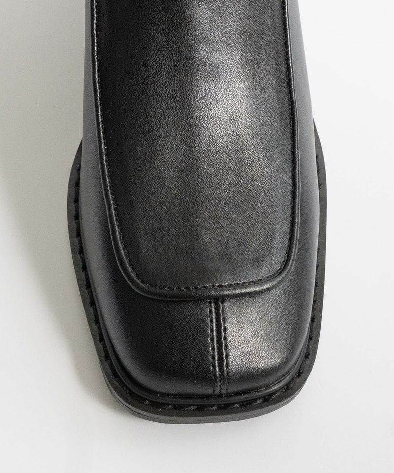 モード感漂うスクエアトゥデザインと、バックファスナー仕様がポイント。