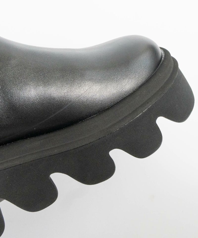 存在感のあるバルキーソールと、サイドゴア仕様で快適な着脱を実現。