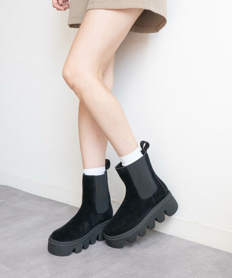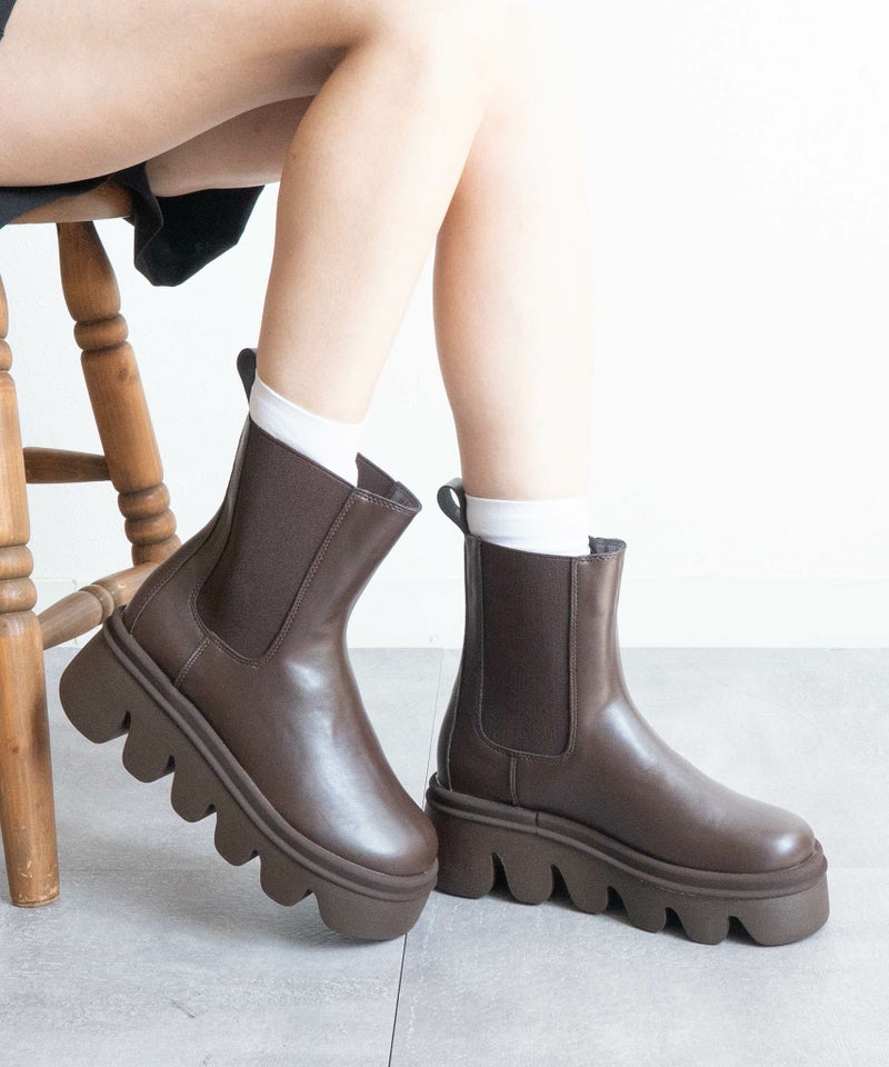 【バルキーソールサイドゴアショートブーツ】