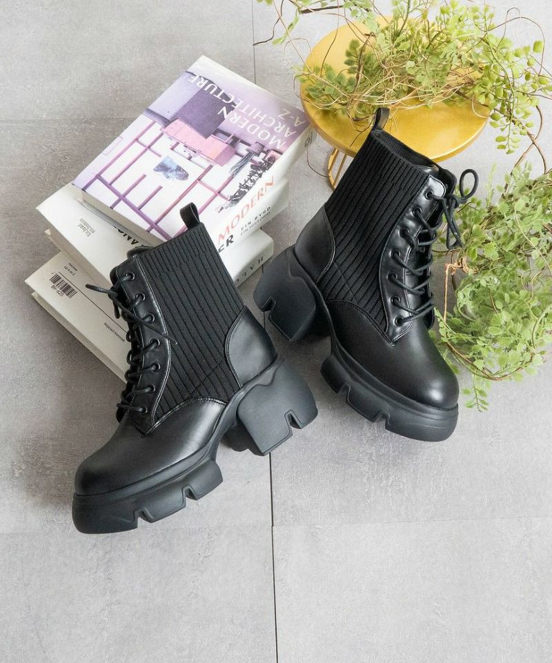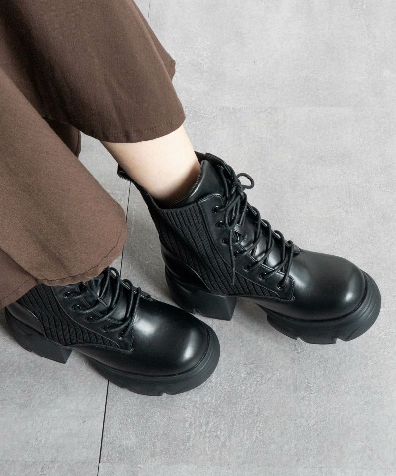 厚底リブニットレースアップショートブーツ/レディース/fabby fabby(ファビーファビー)/54995