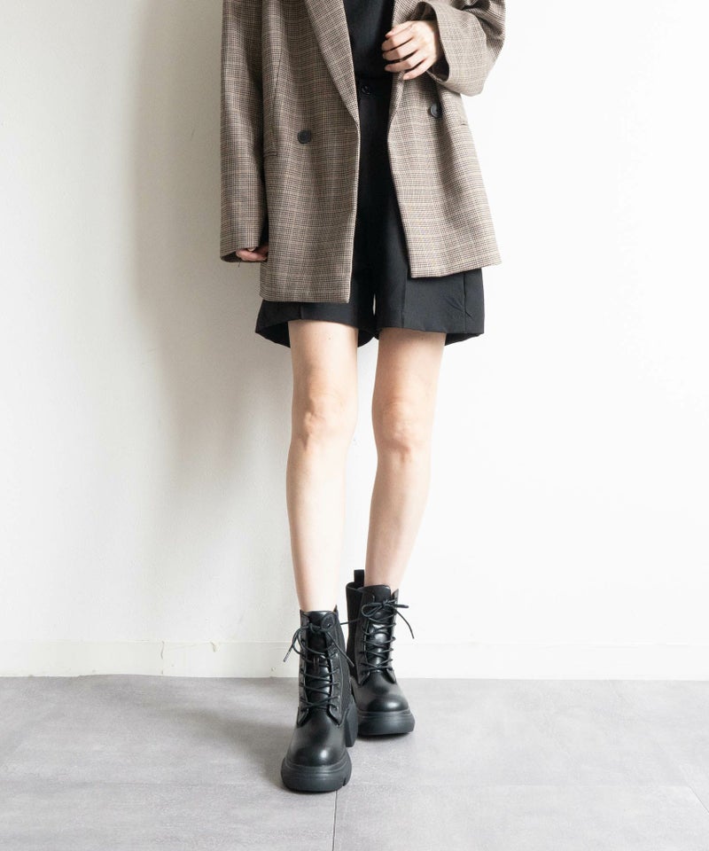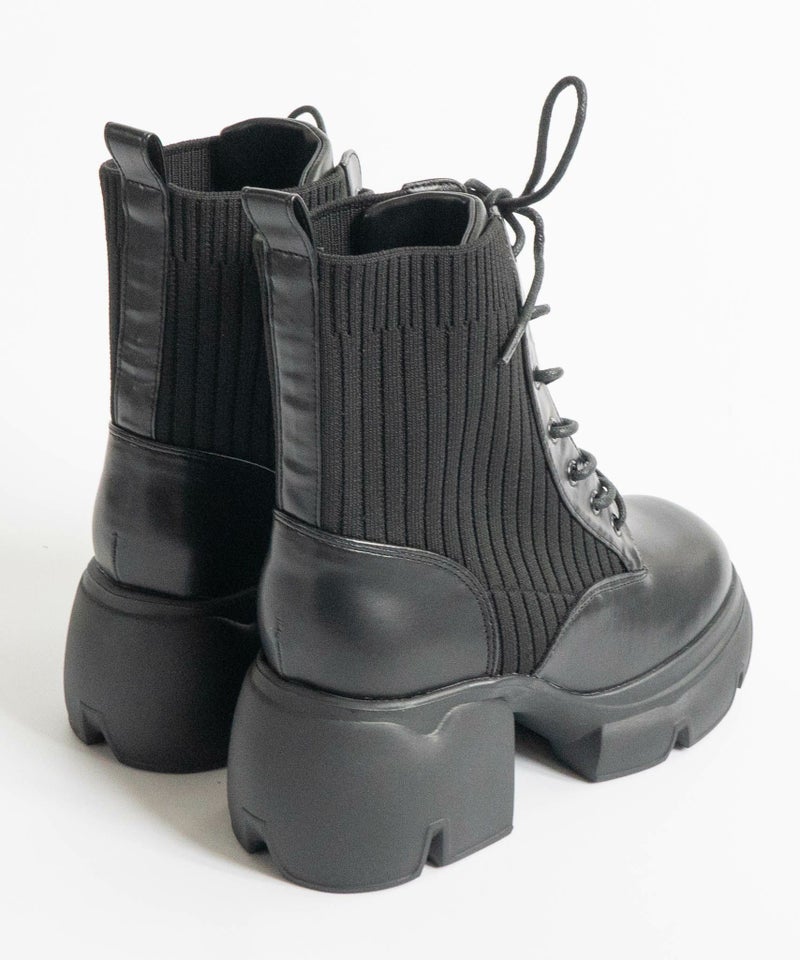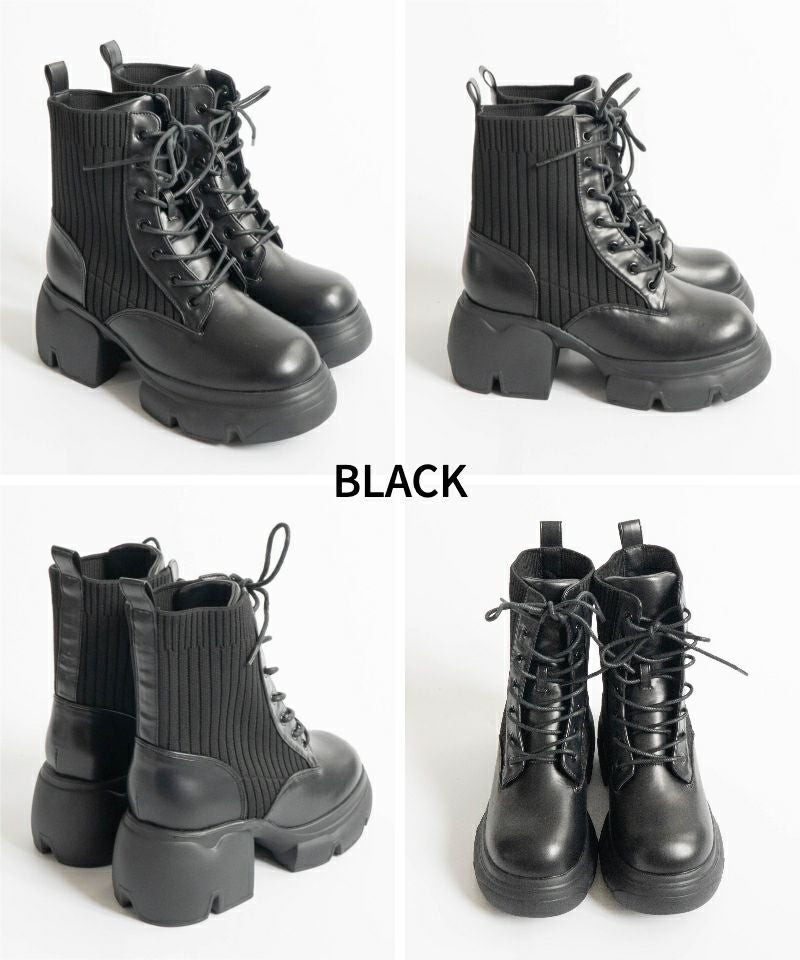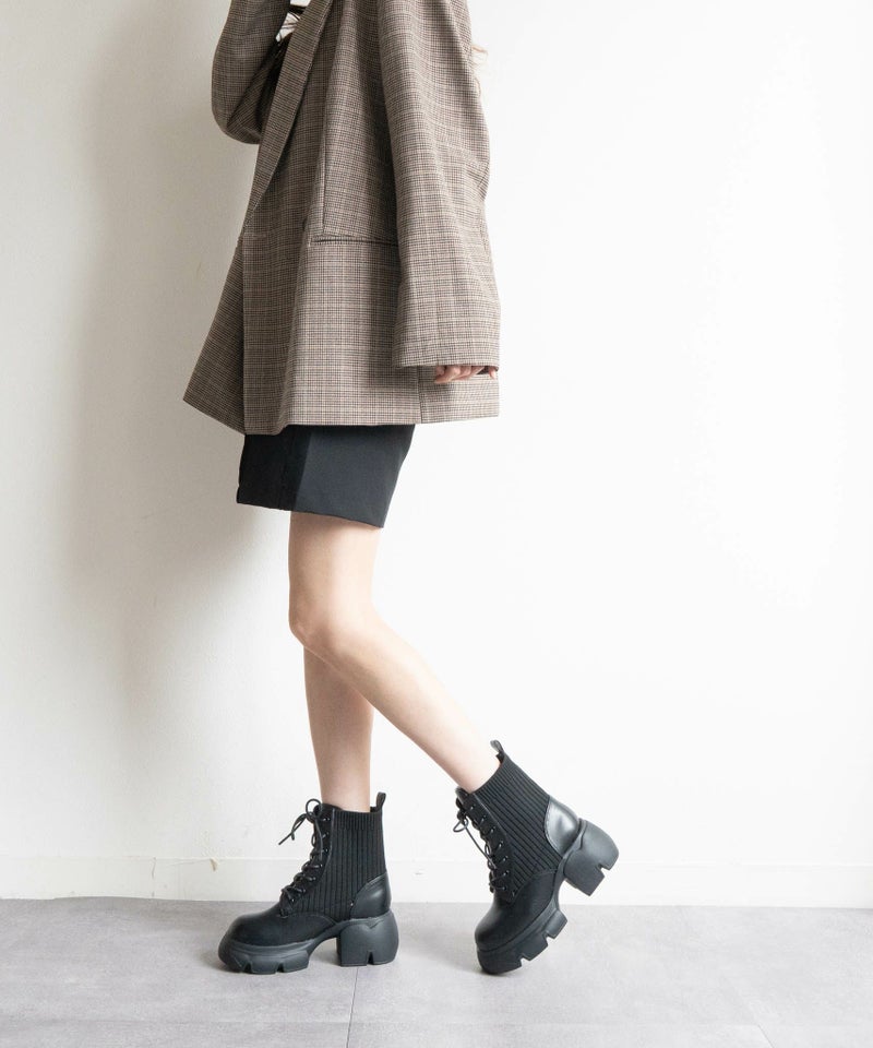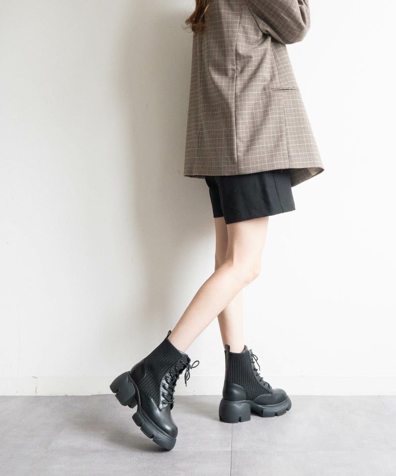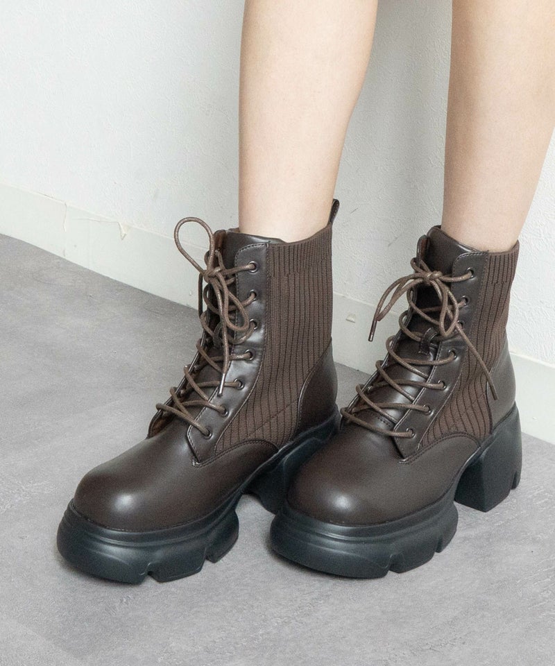 【厚底リブニットレースアップショートブーツ】