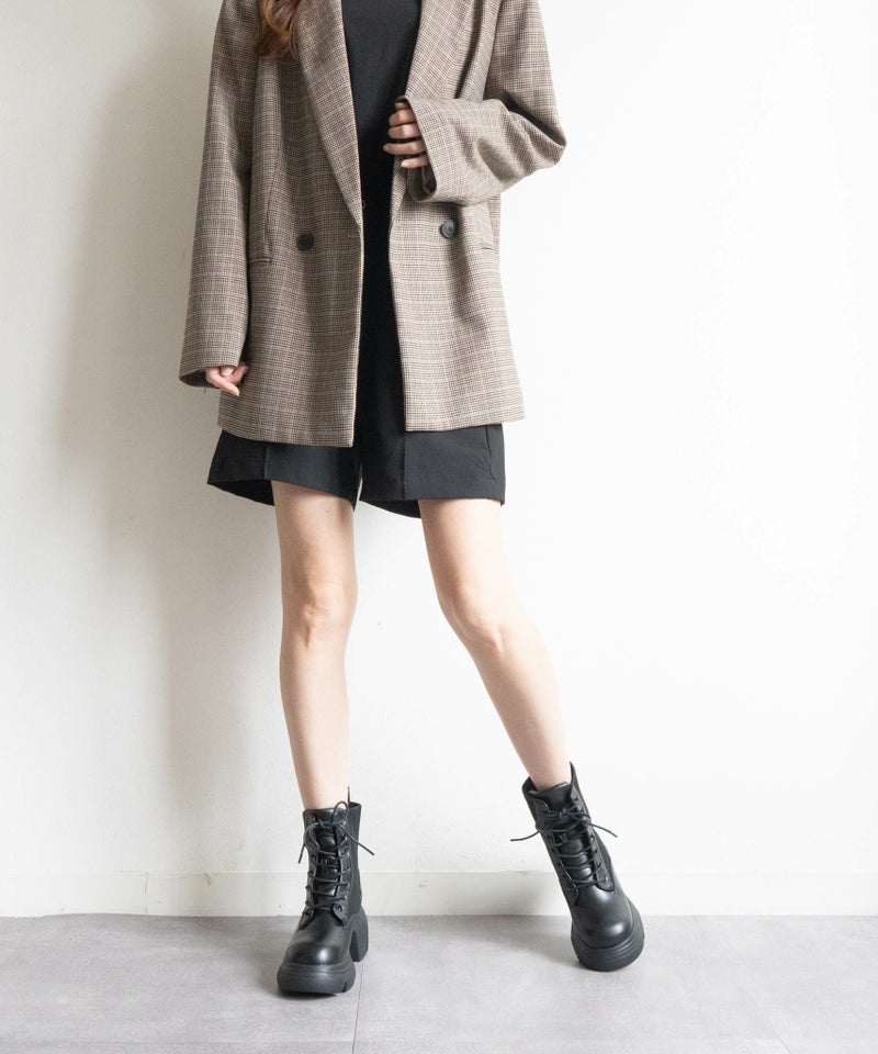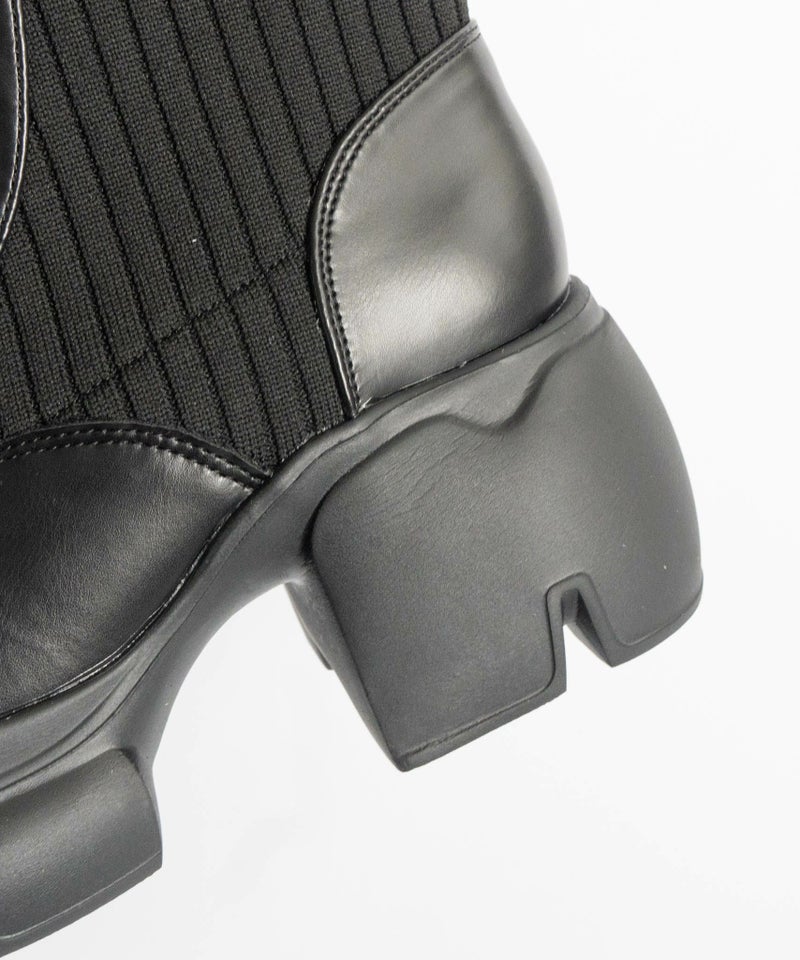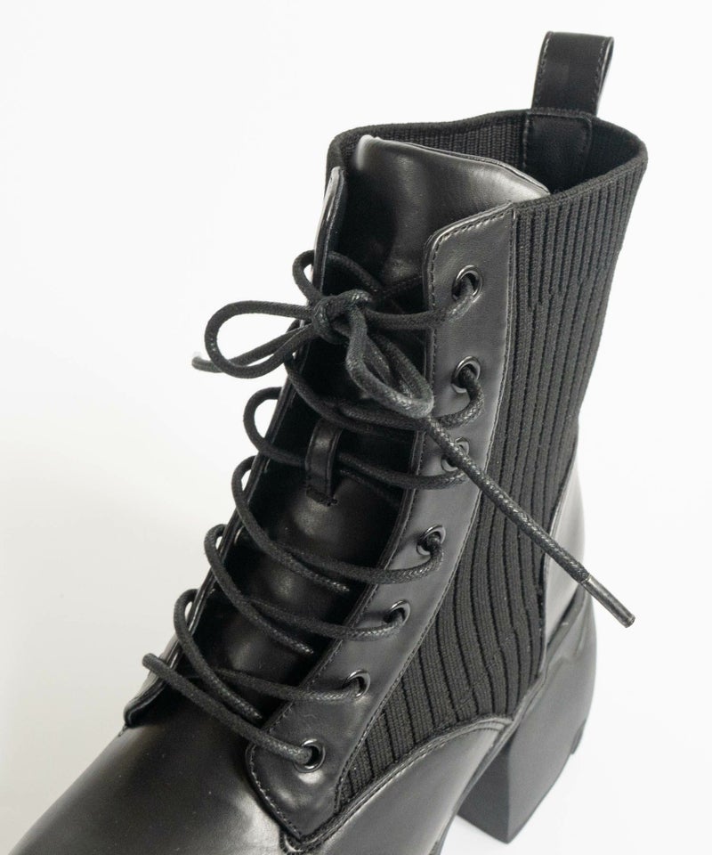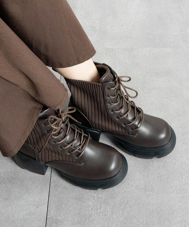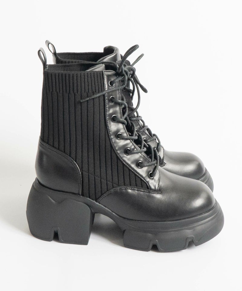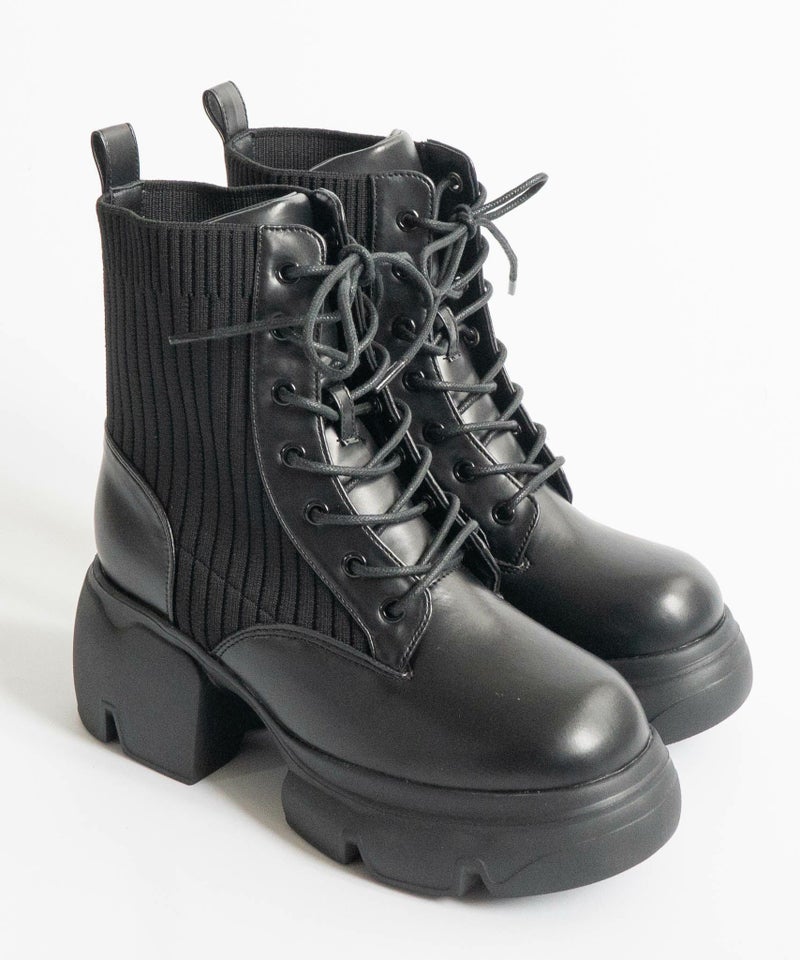 【厚底リブニットレースアップショートブーツ】