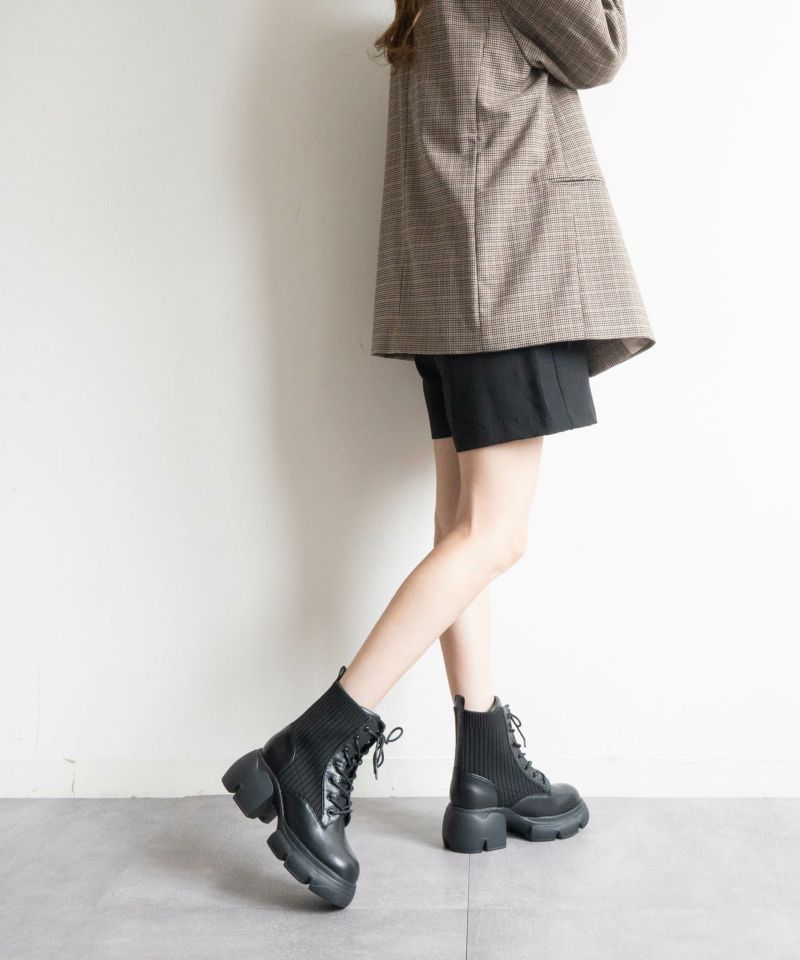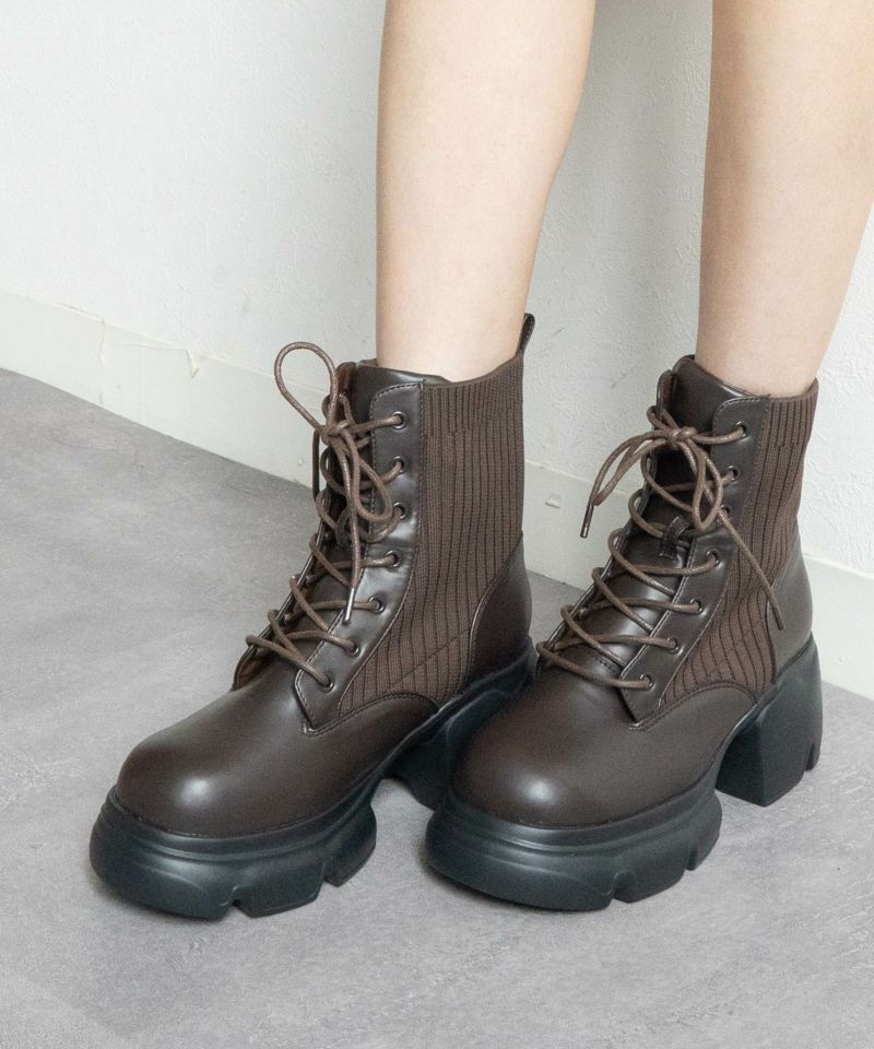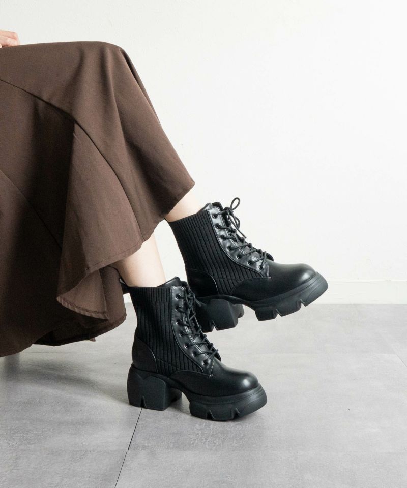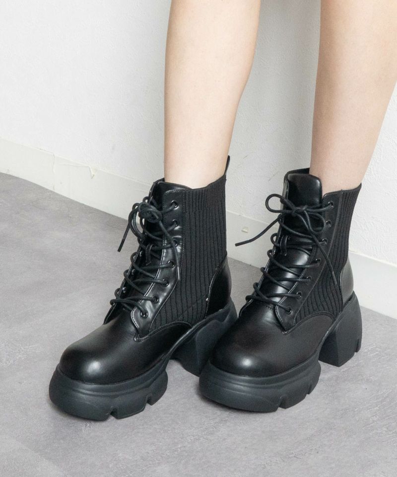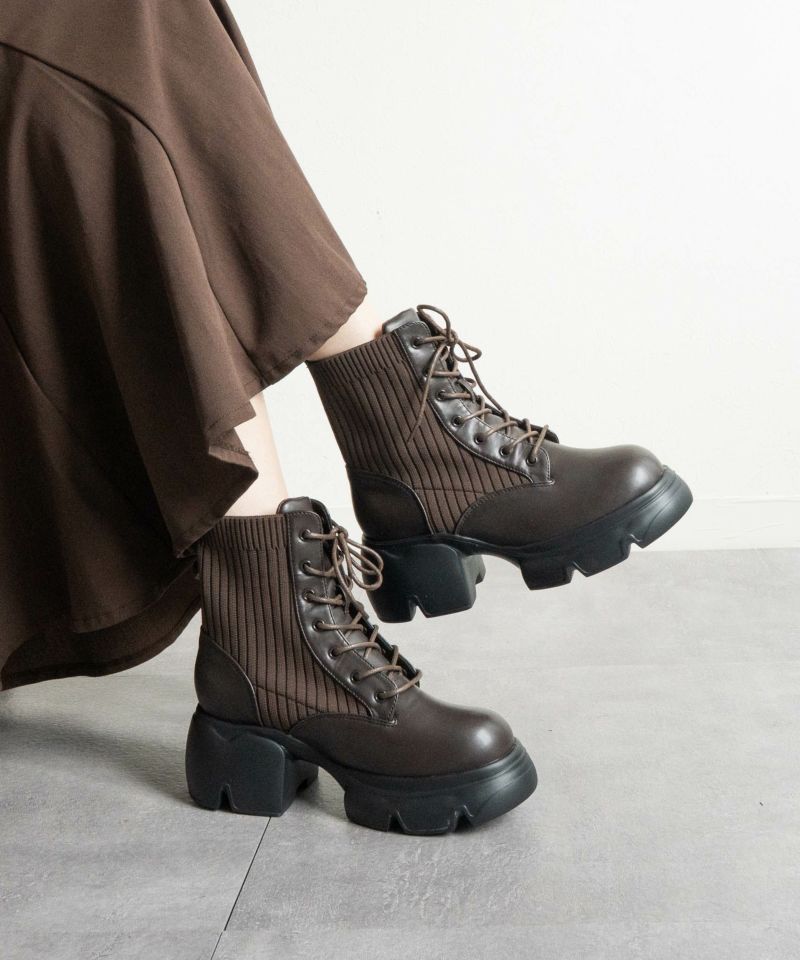 厚底リブニットレースアップショートブーツ/レディース/fabby fabby(ファビーファビー)/54995
