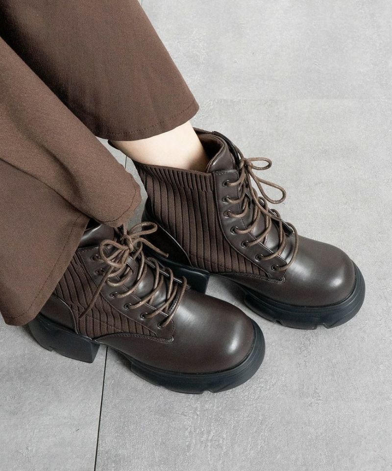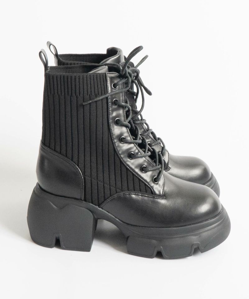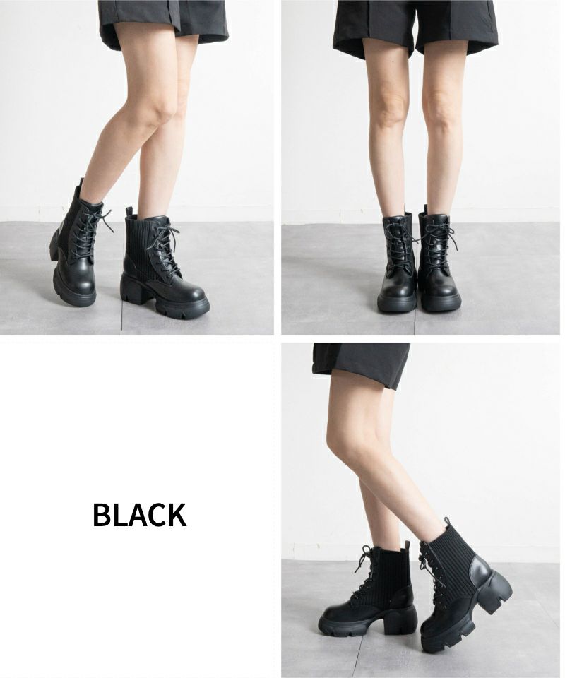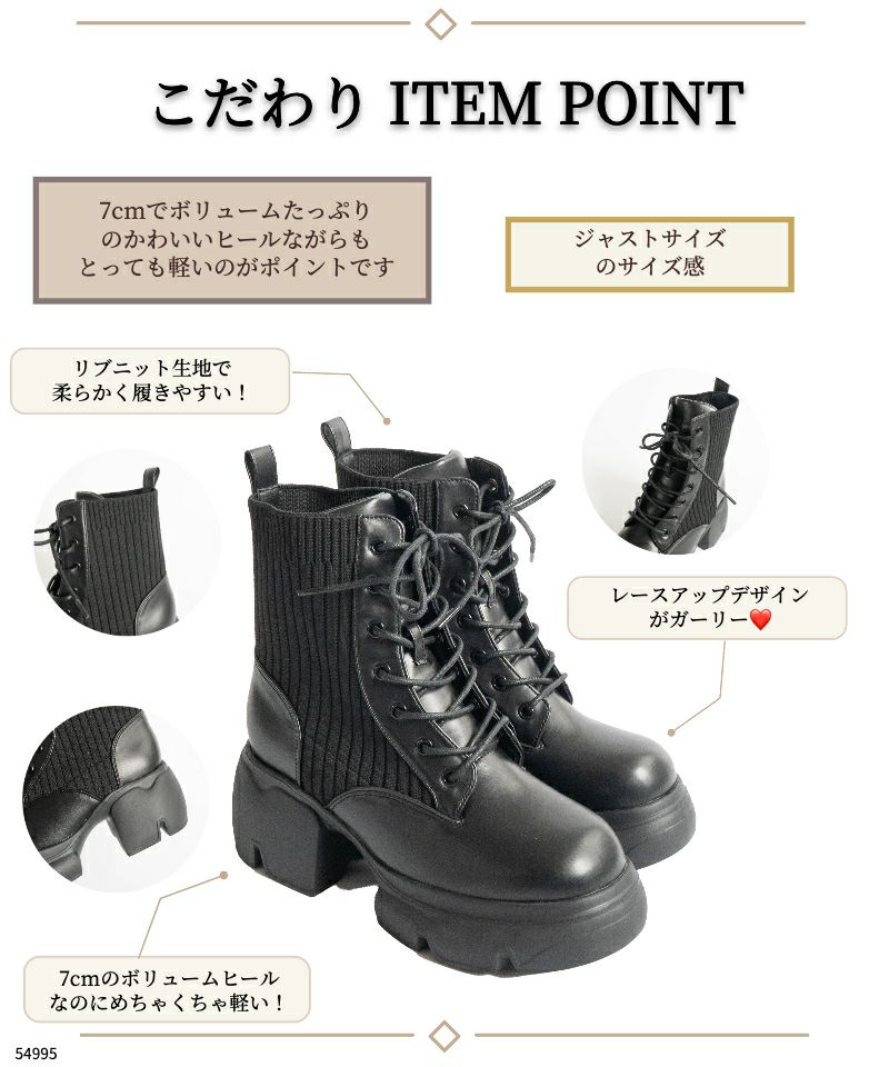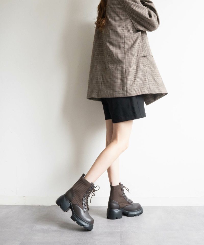 厚底リブニットレースアップショートブーツ/レディース/fabby fabby(ファビーファビー)/54995