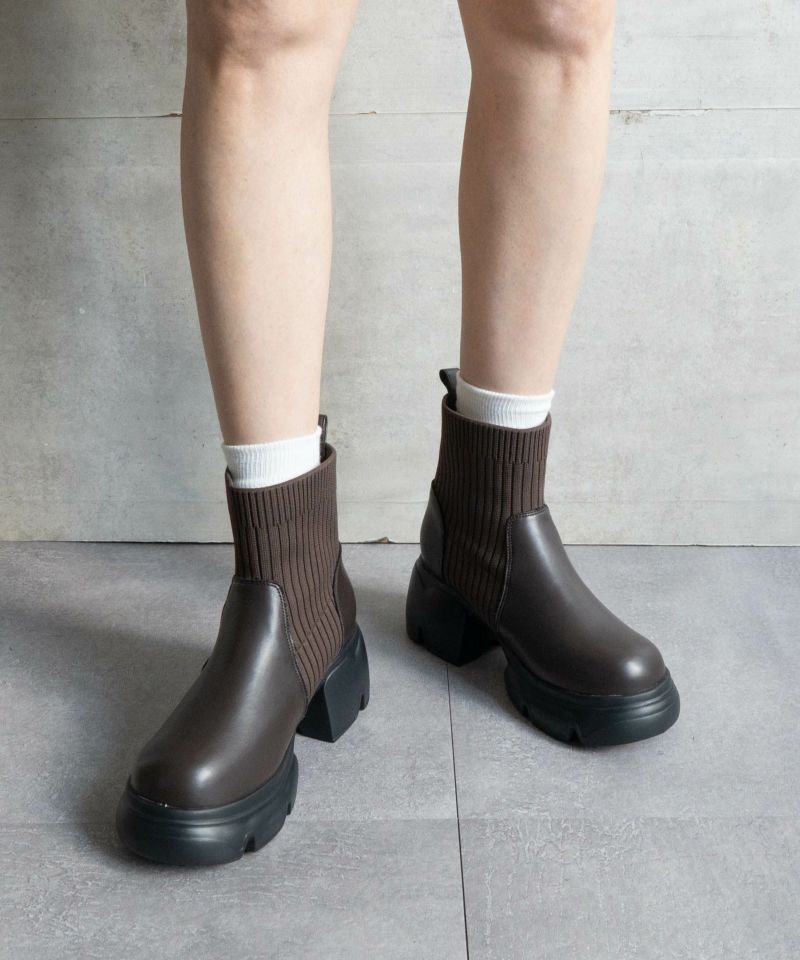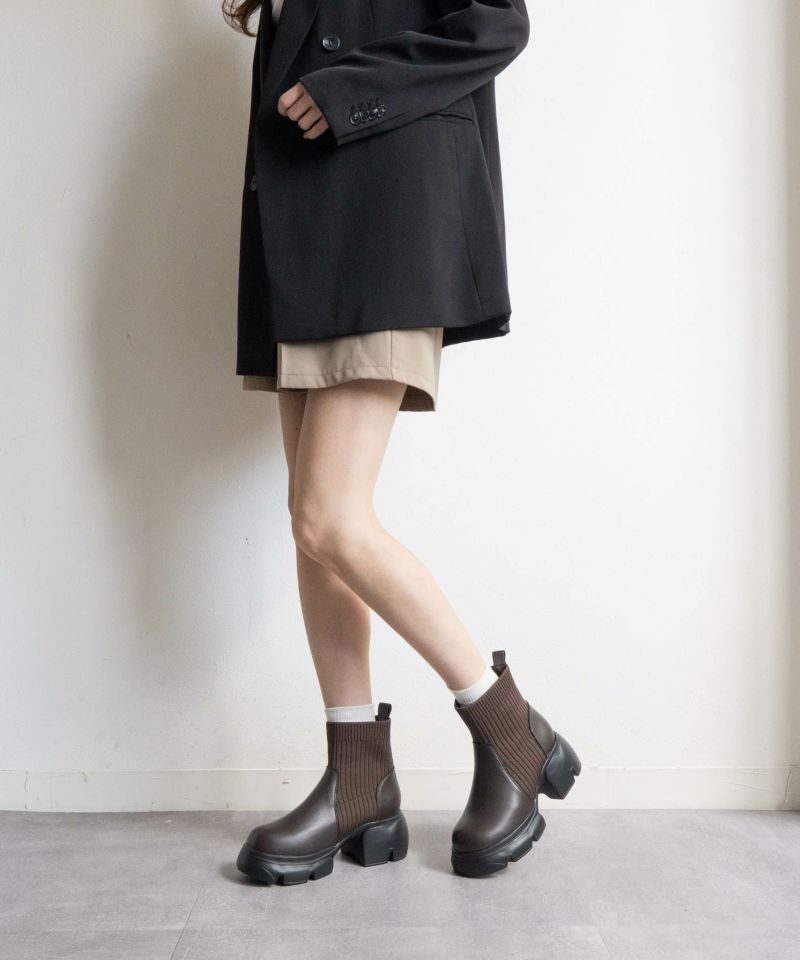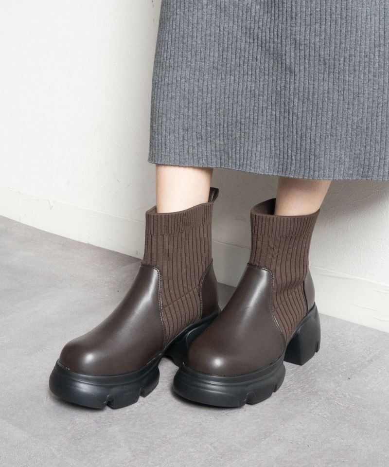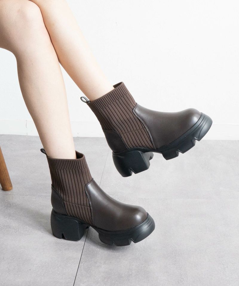 【厚底リブニットショートブーツ】