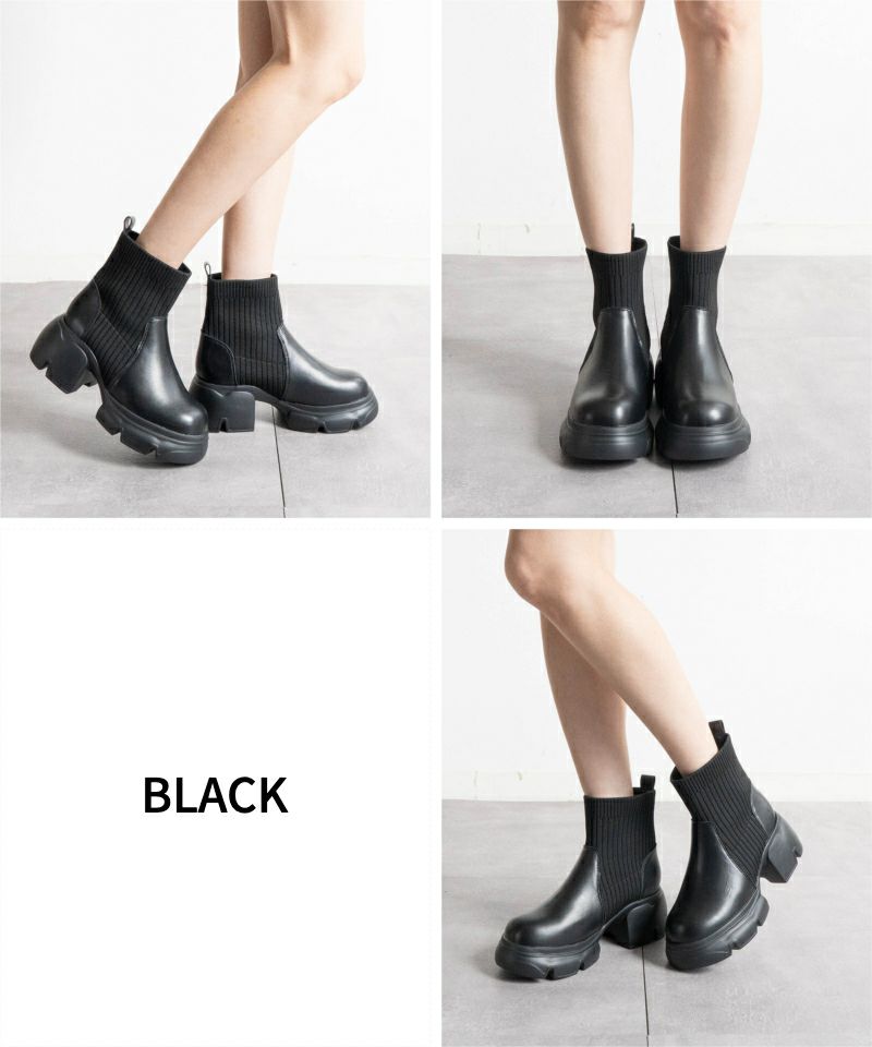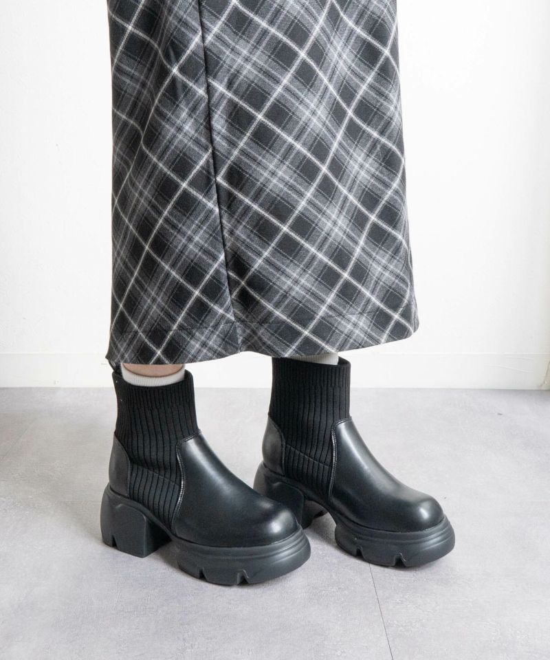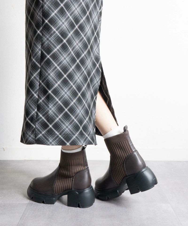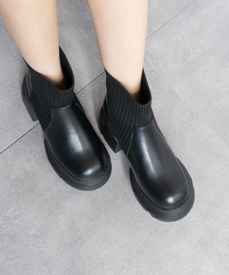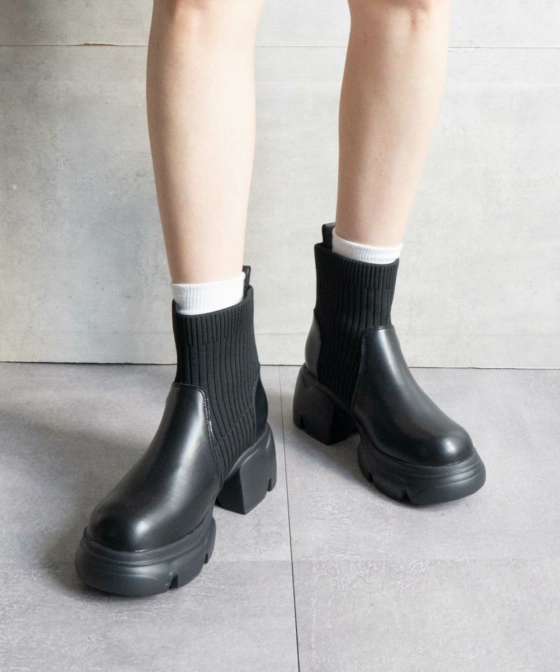 【厚底リブニットショートブーツ】