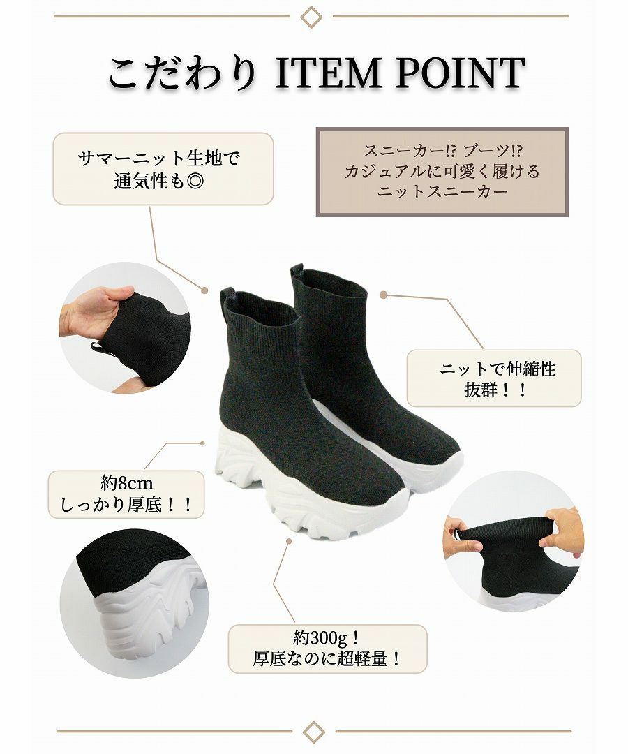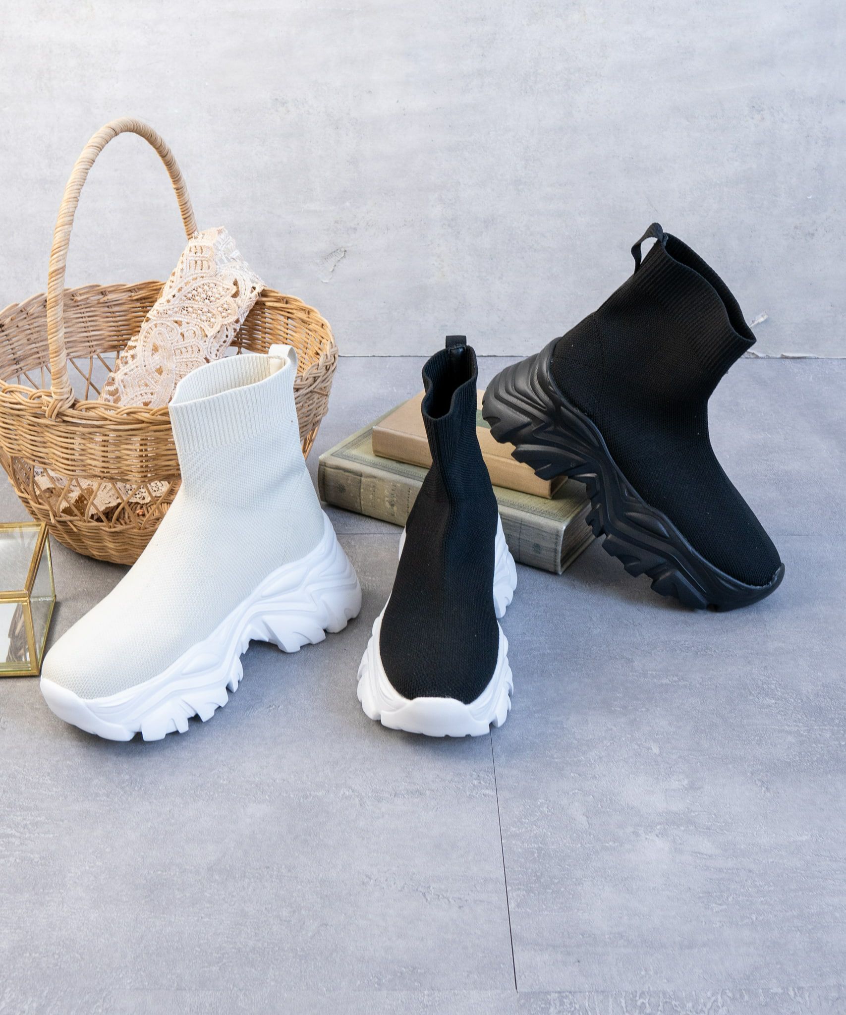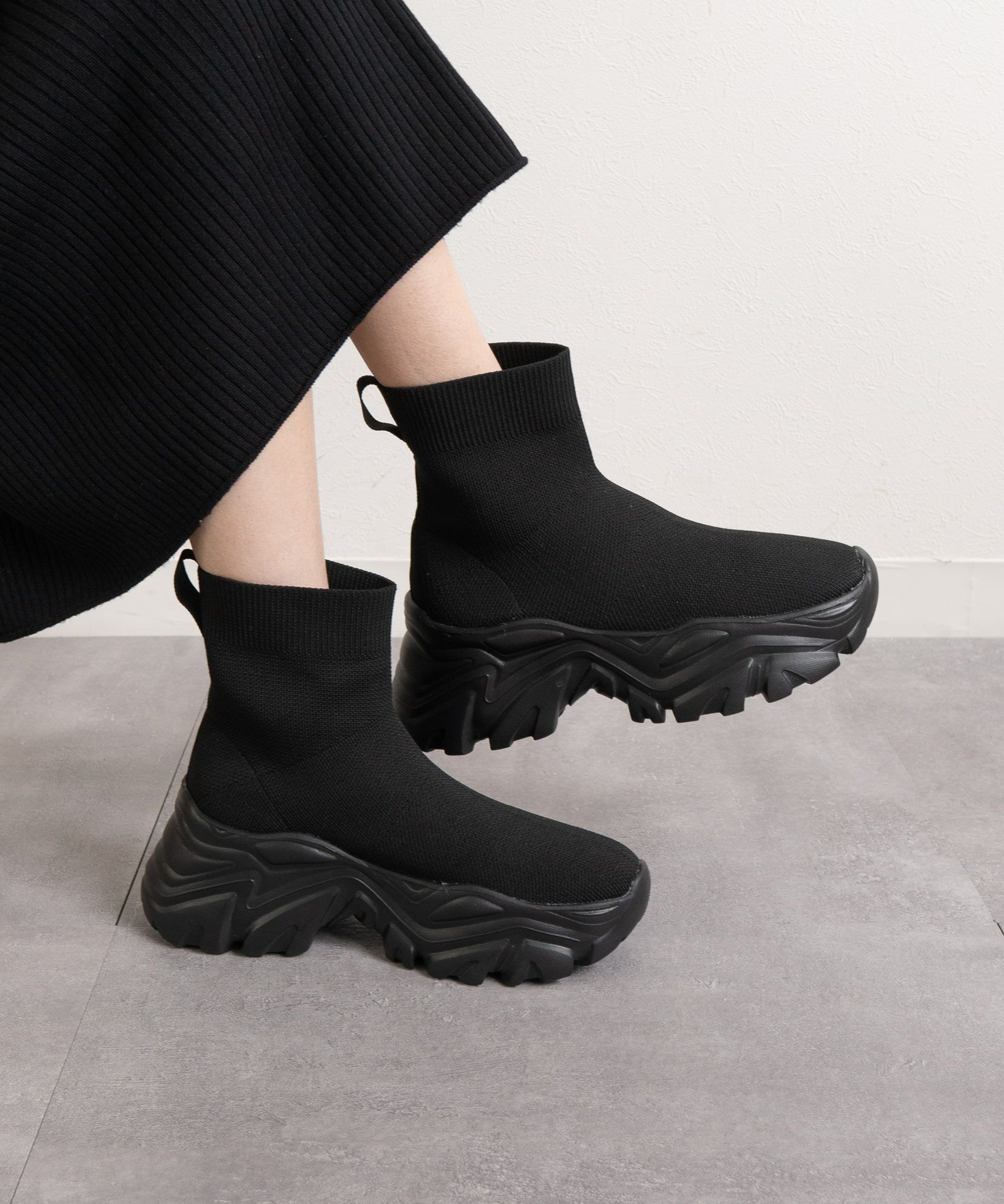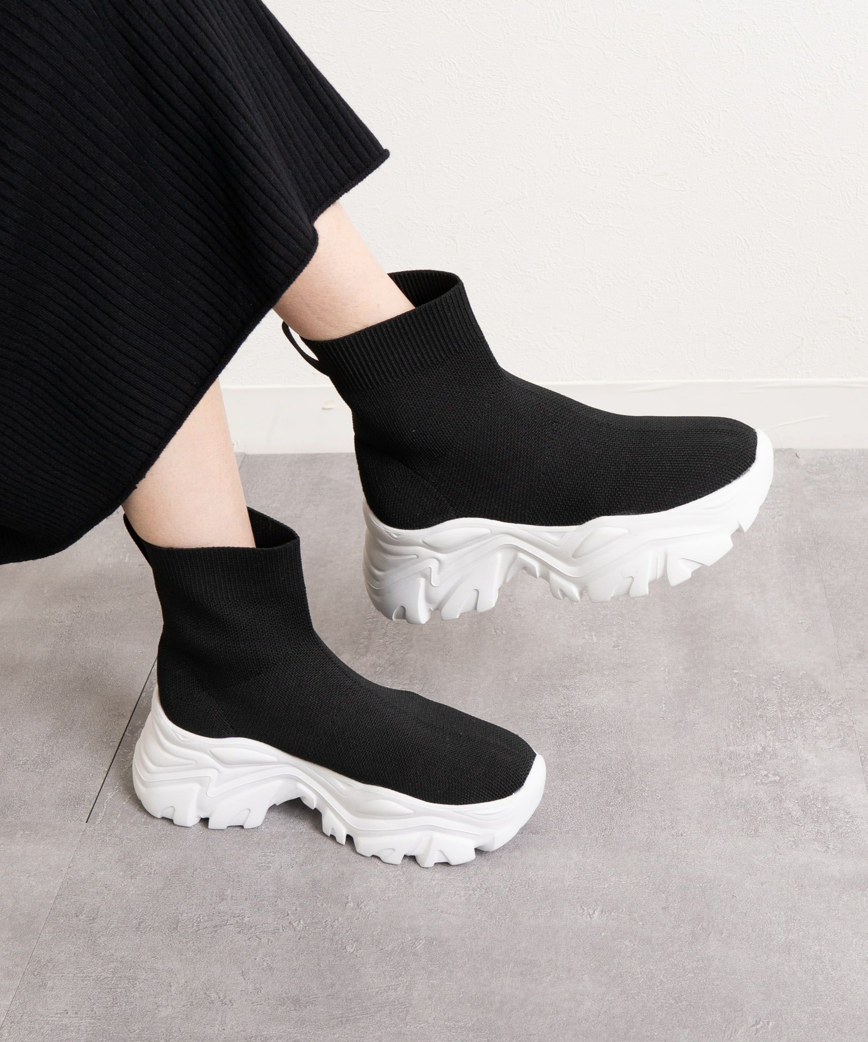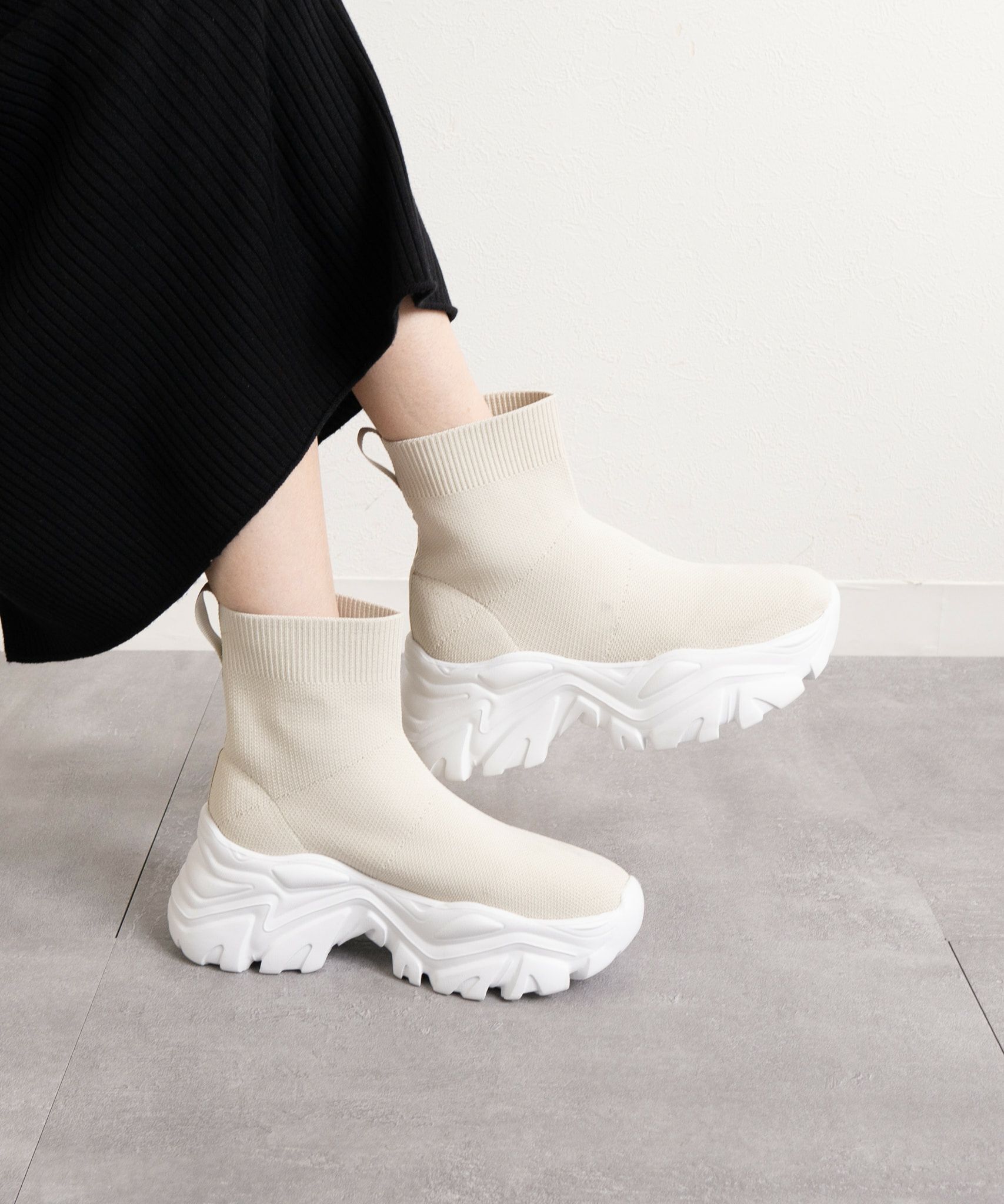 ボリュームソールとフィットするニット生地で足元をより華奢にみせてくれます。