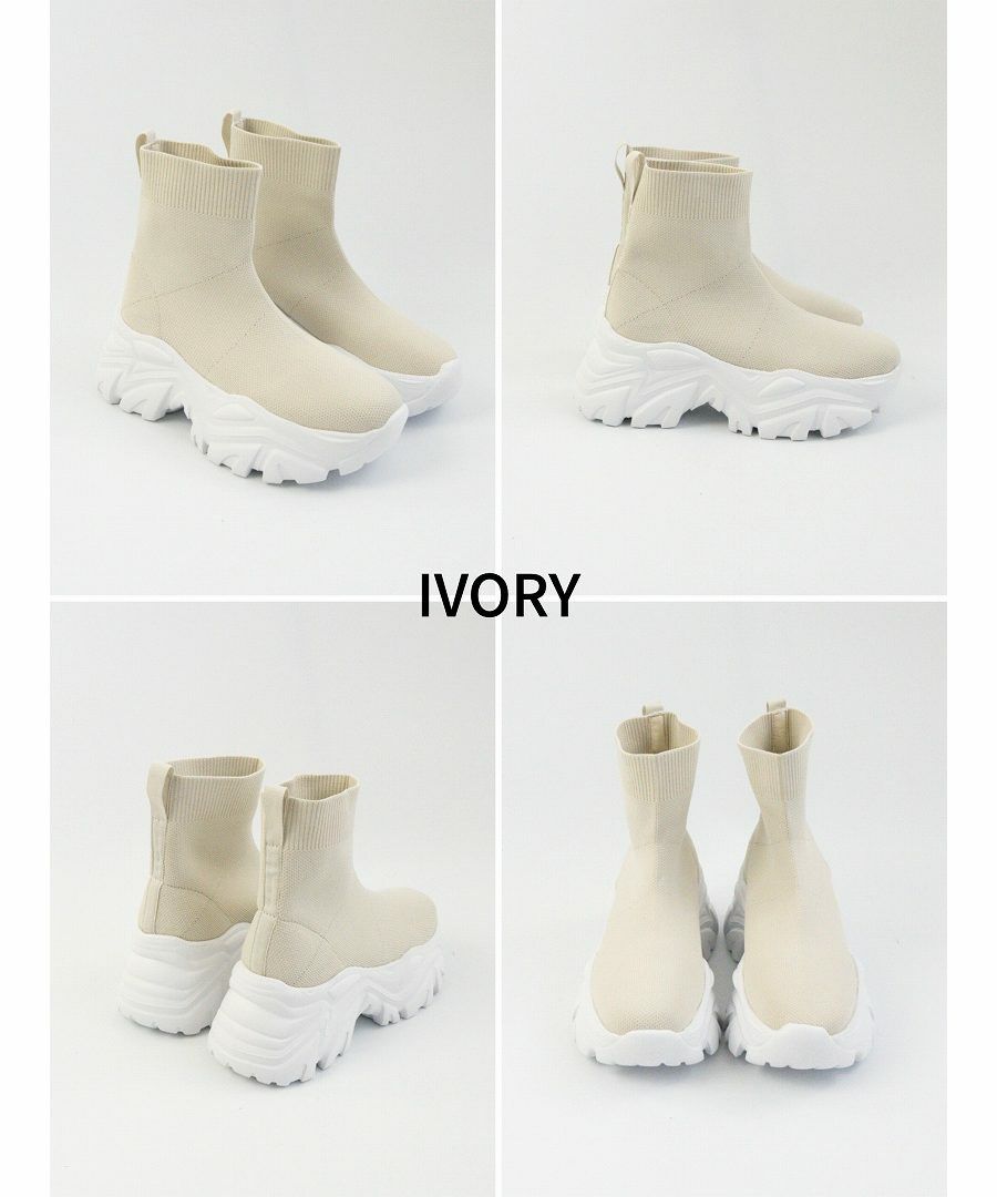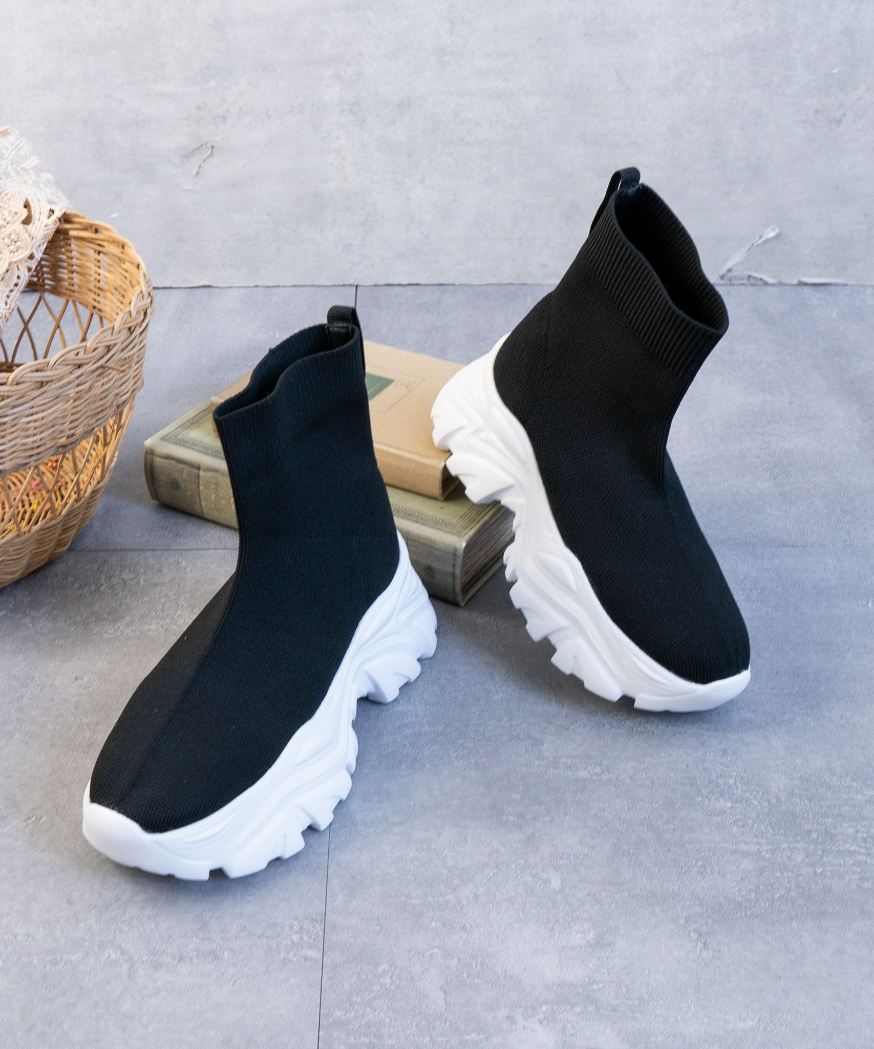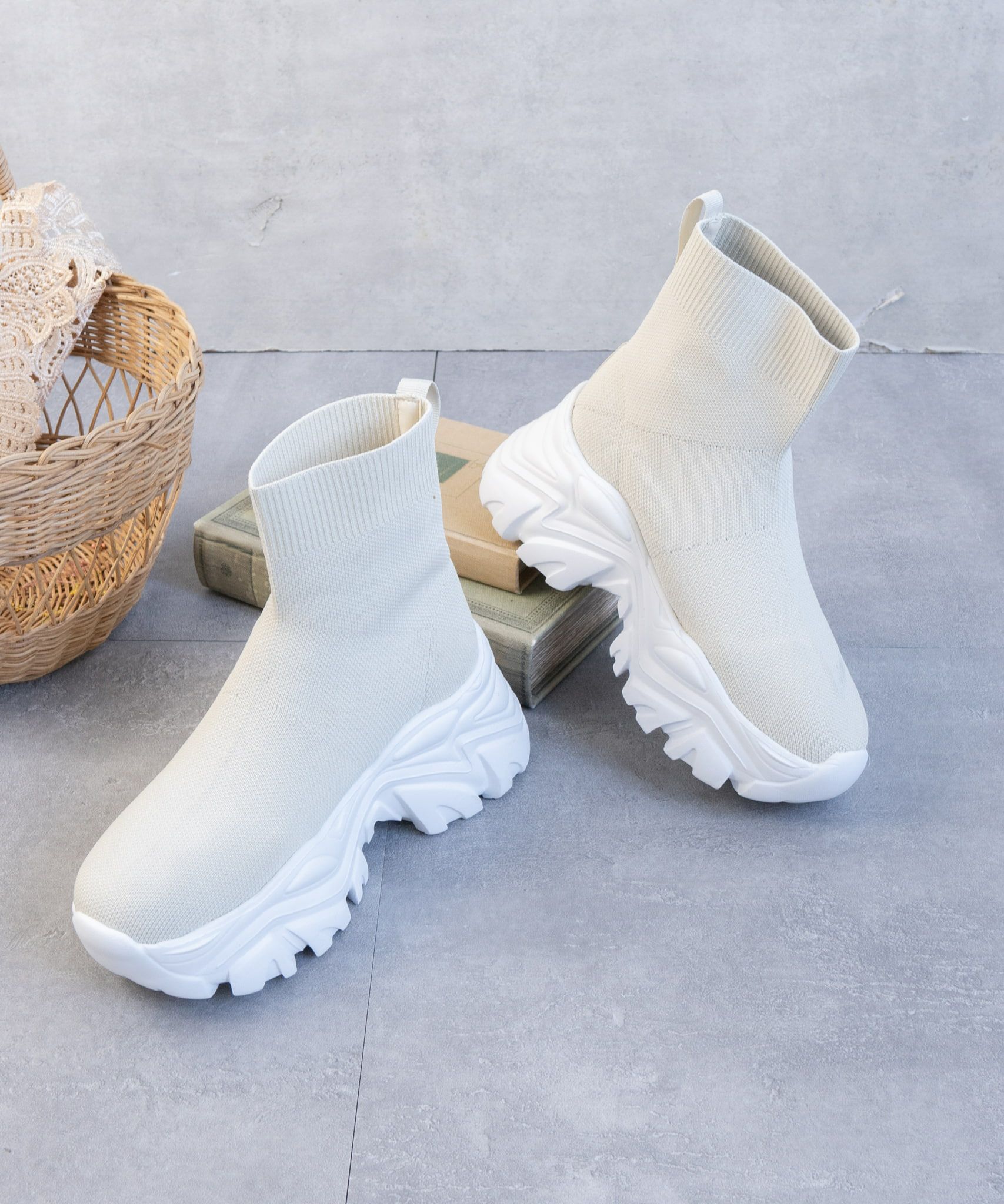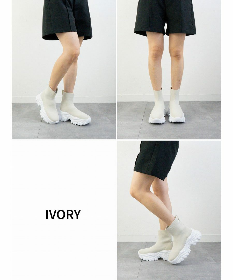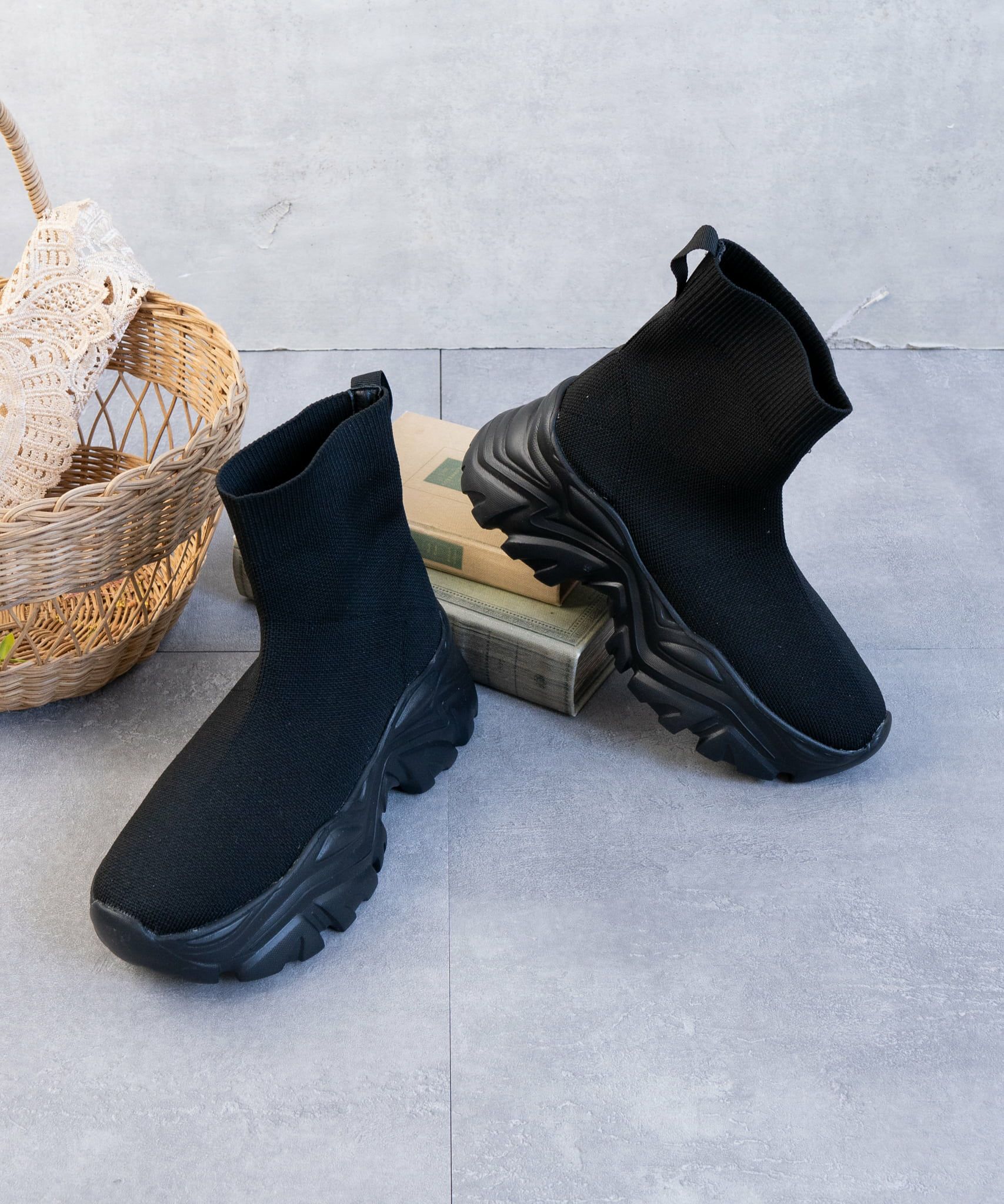 ボリュームソールとフィットするニット生地で足元をより華奢にみせてくれます。