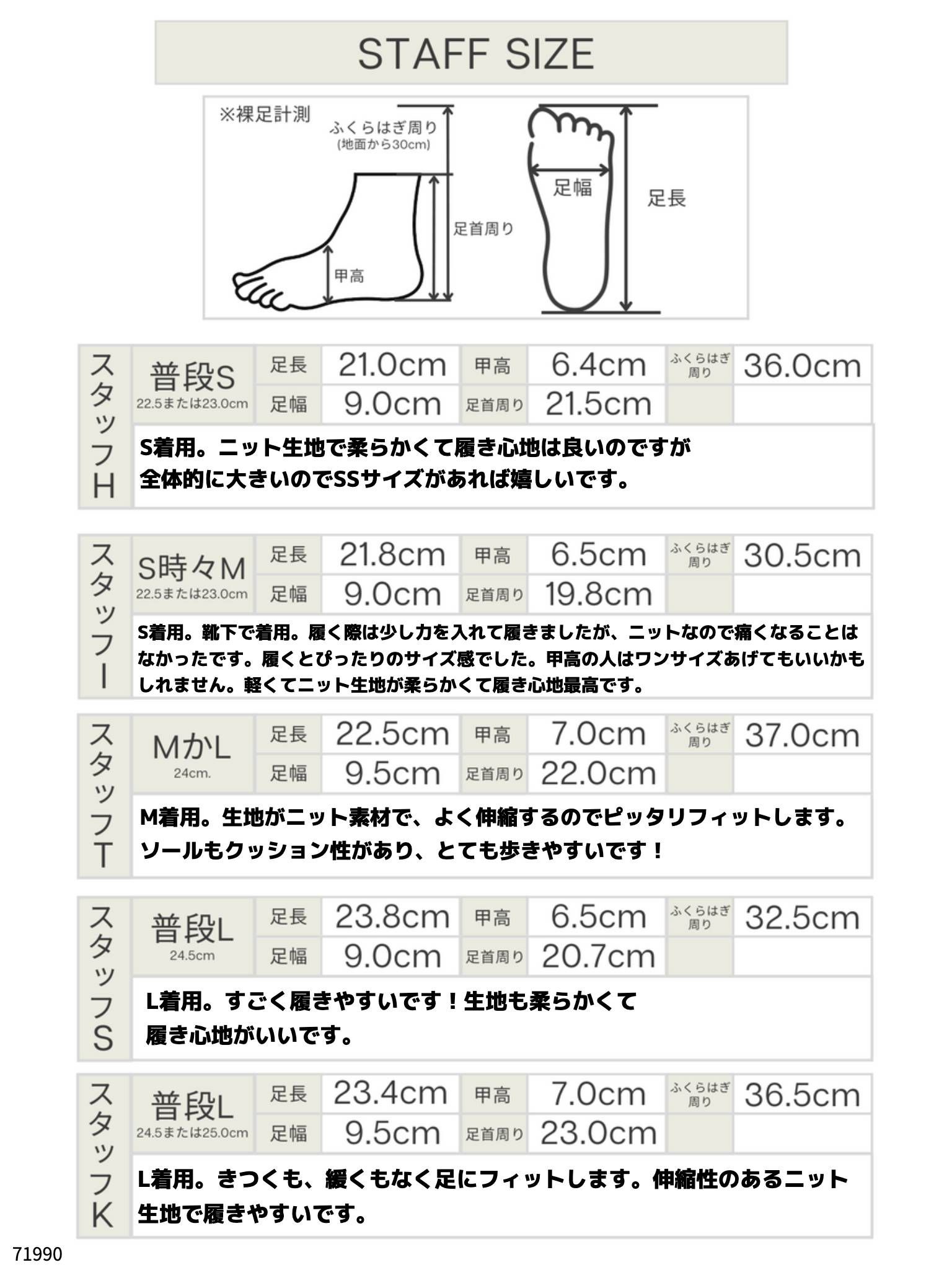 サイズ S(22.5~23cm) M(23.5~24cm) L(24.5~25cm)
