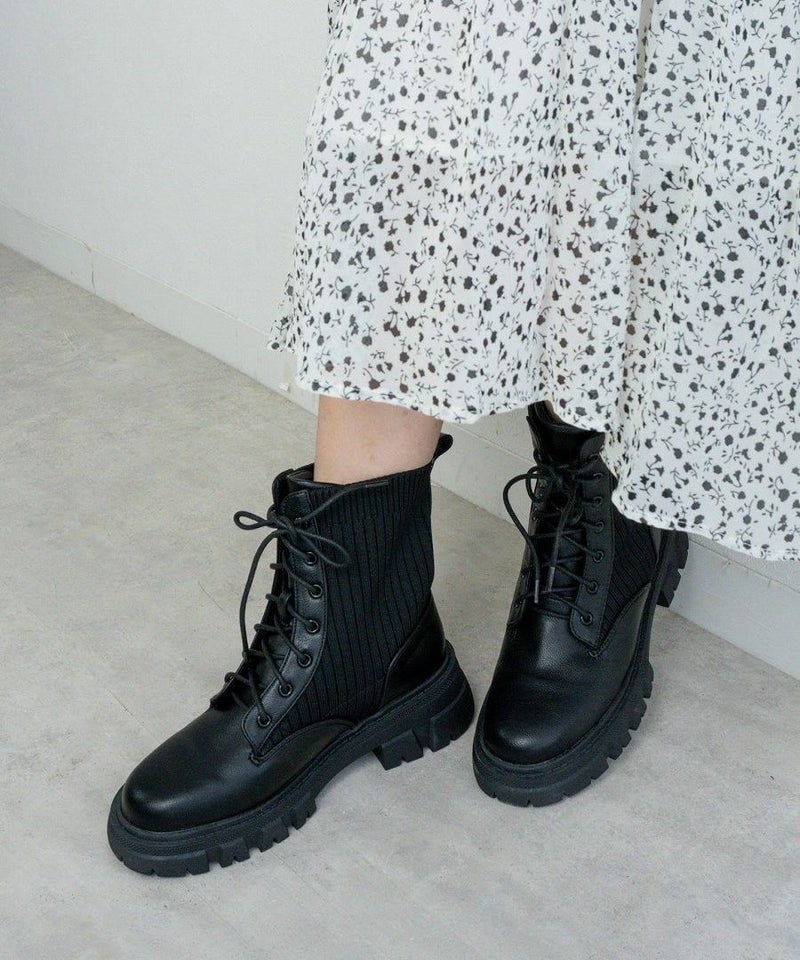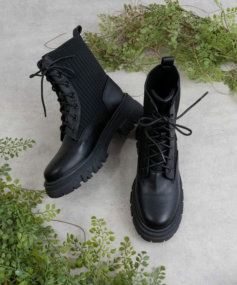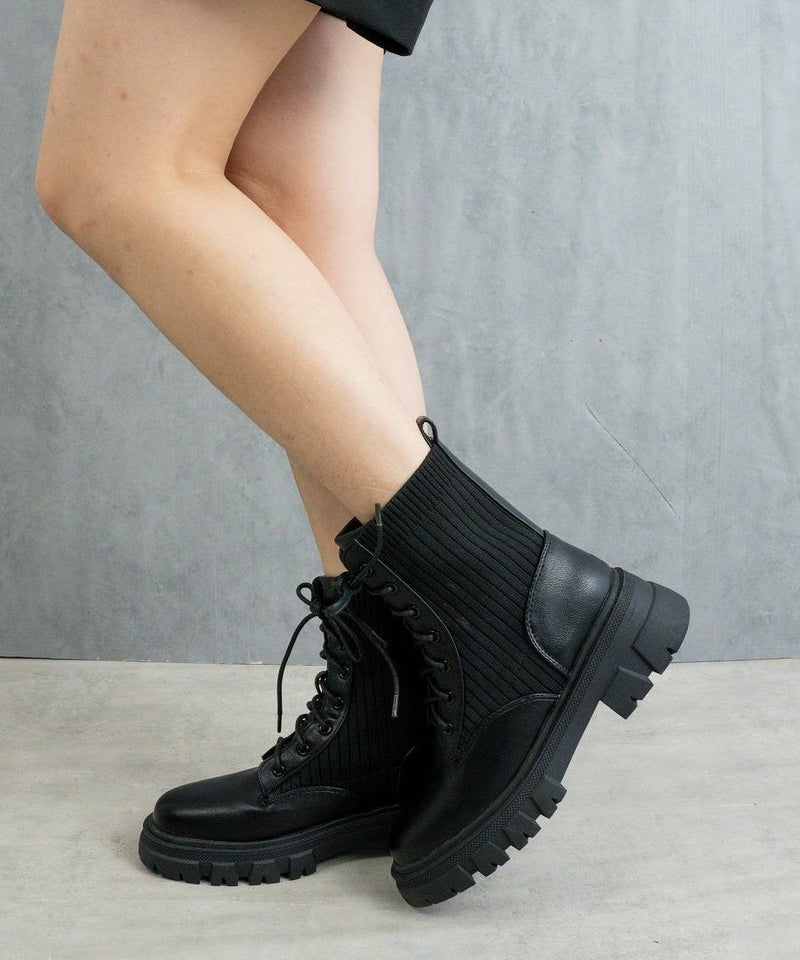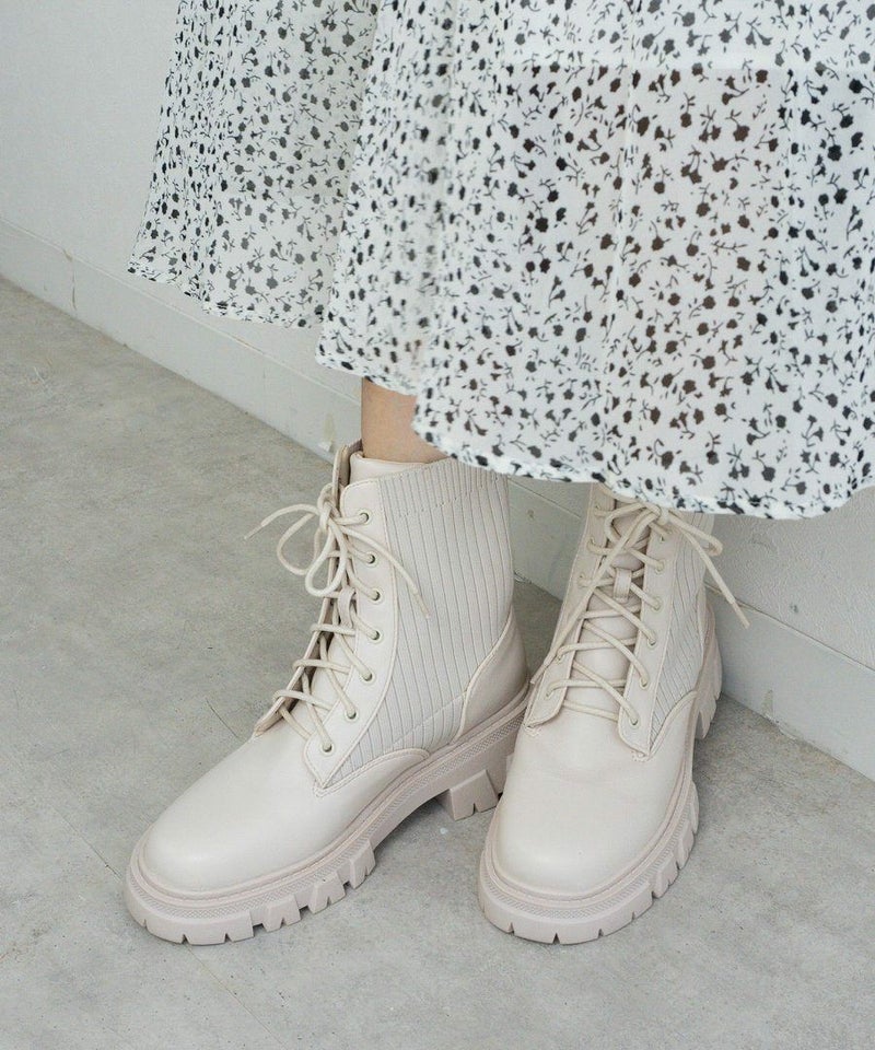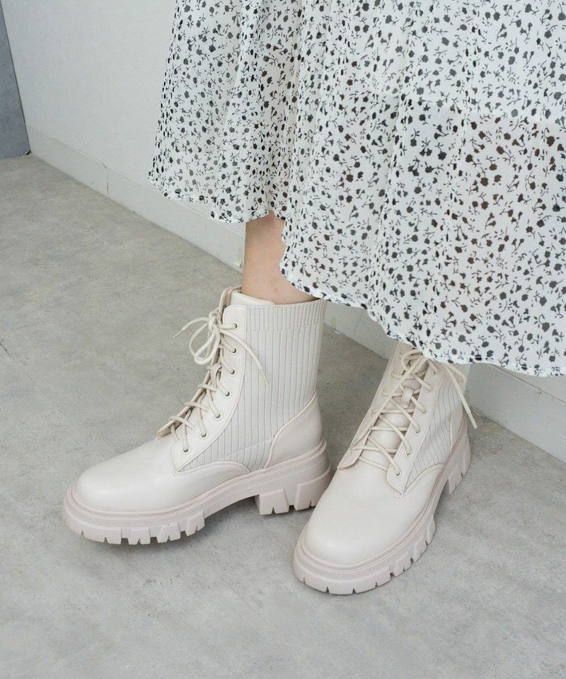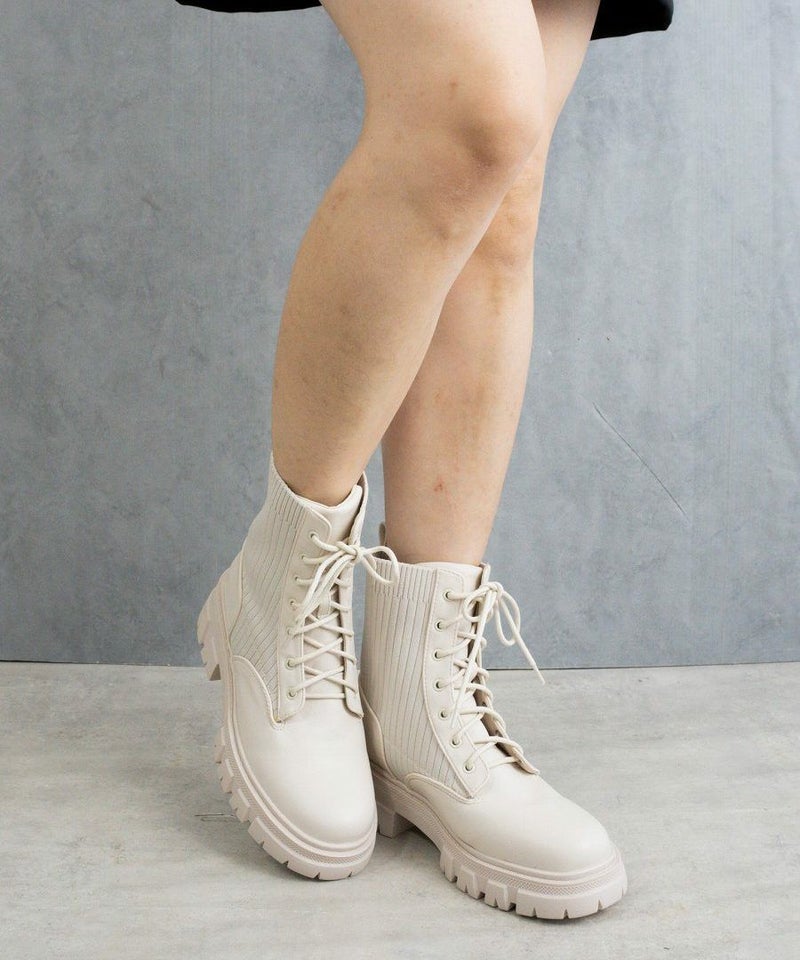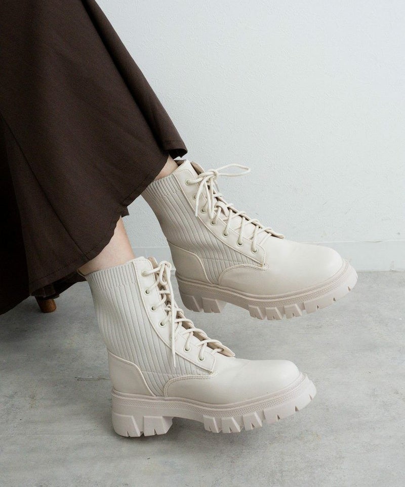 トレンドのニット素材を使ったレースアップニットブーツ!