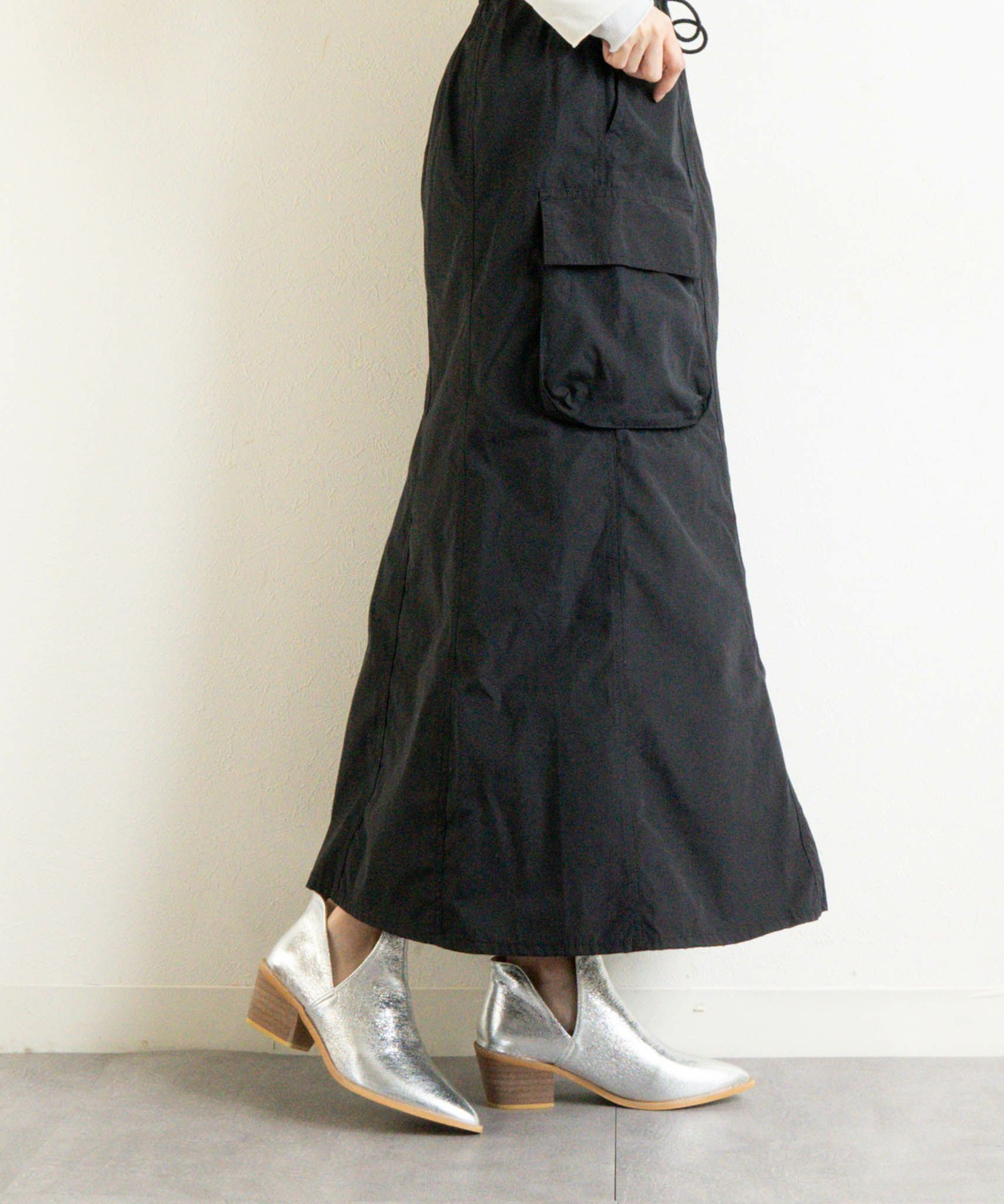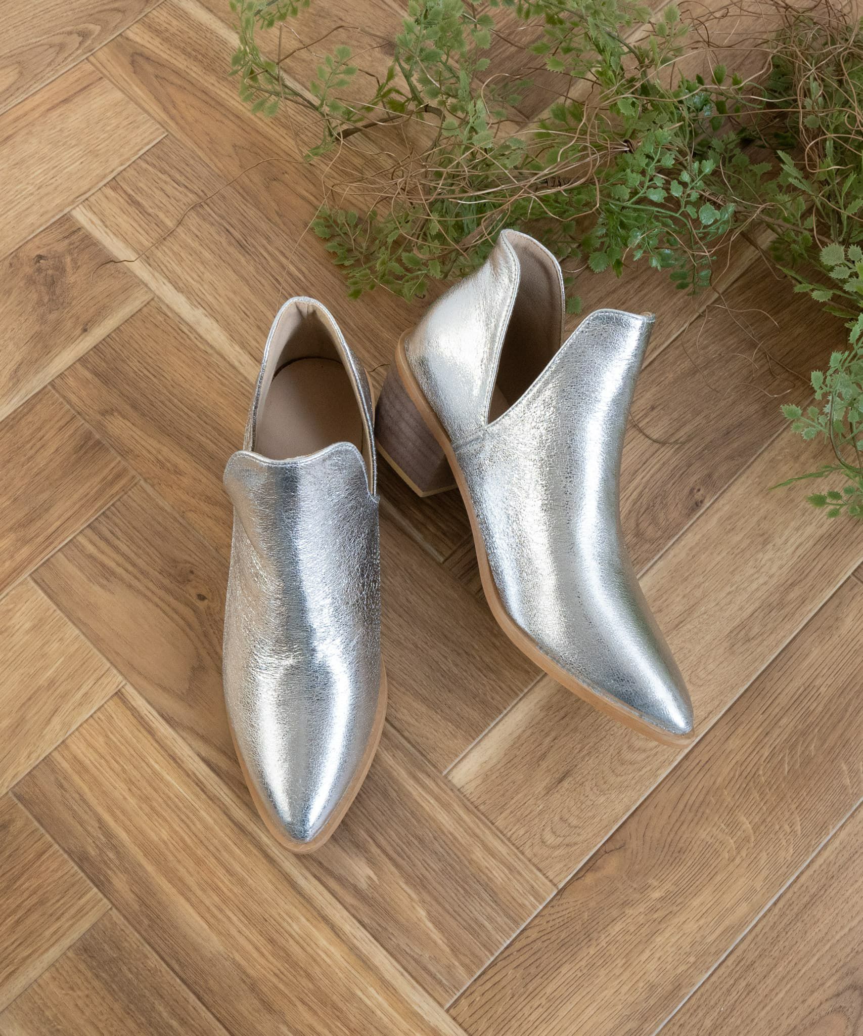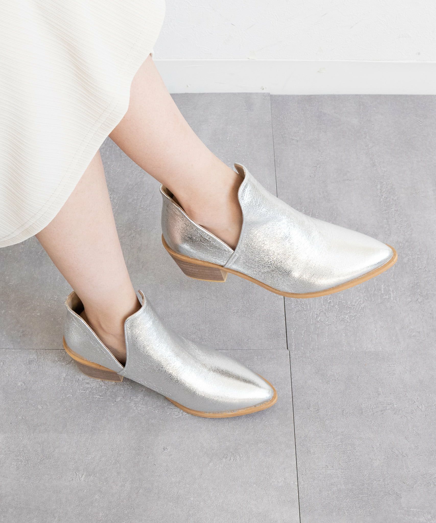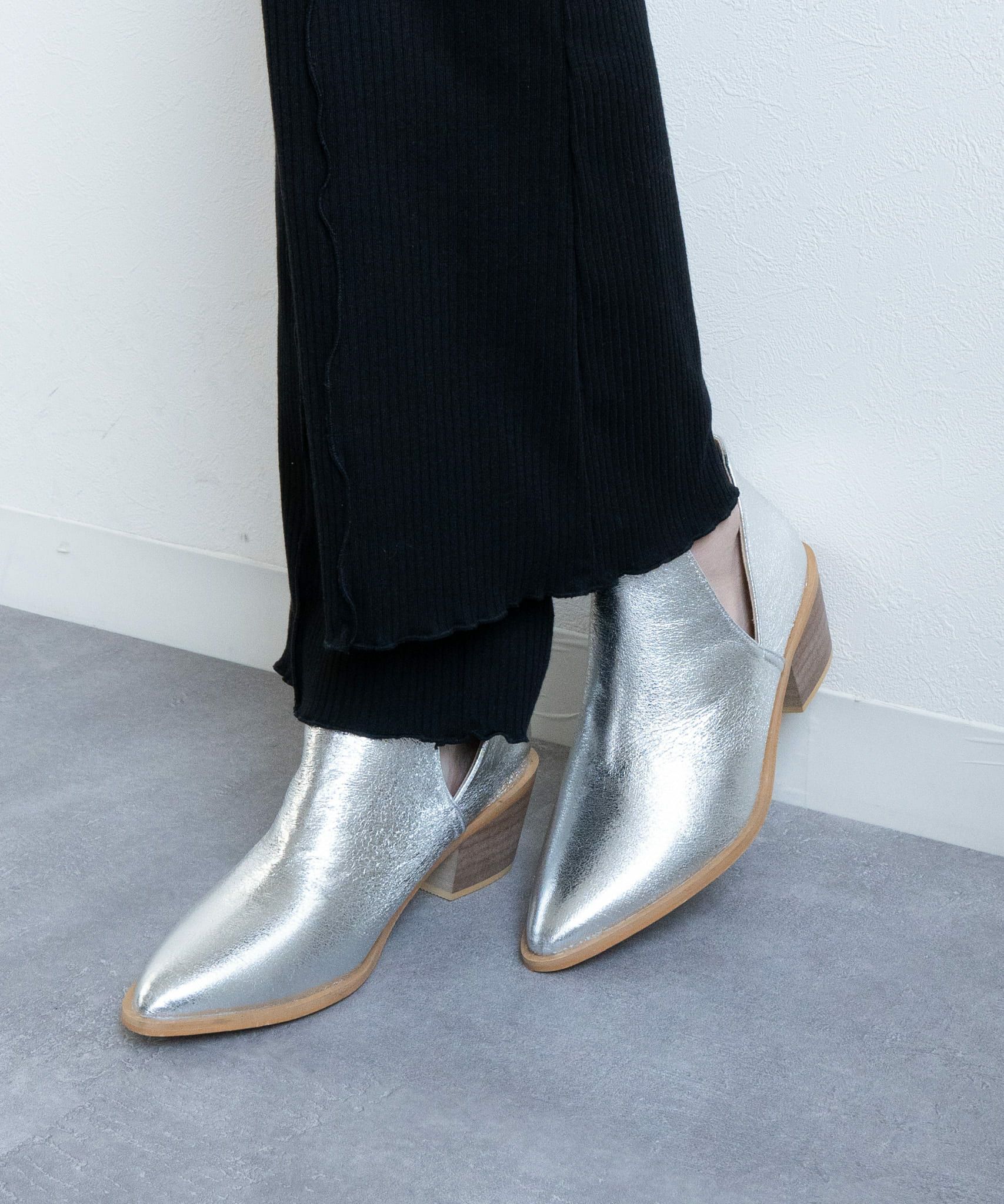 サイドに施されたVカットデザインが、足元をスリムに見せる効果を持ち、スタイリッシュで洗練された印象を与えます。