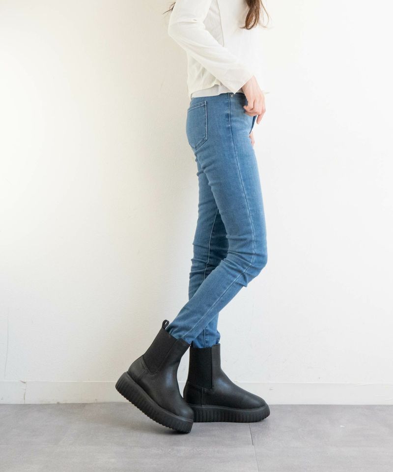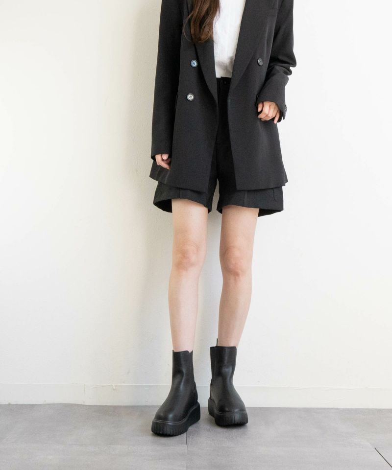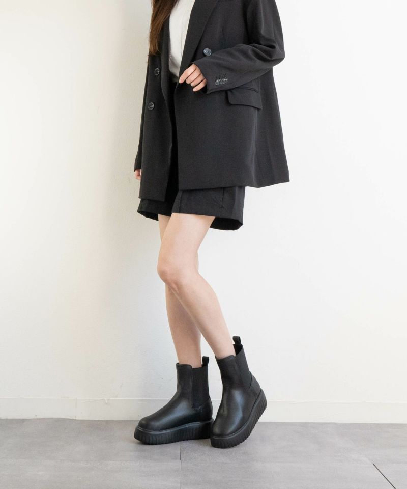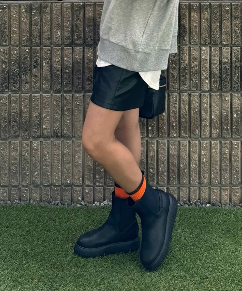 トラックソールの実用性とショートブーツのスタイリッシュなデザインが、カジュアルな装いにぴったりです。