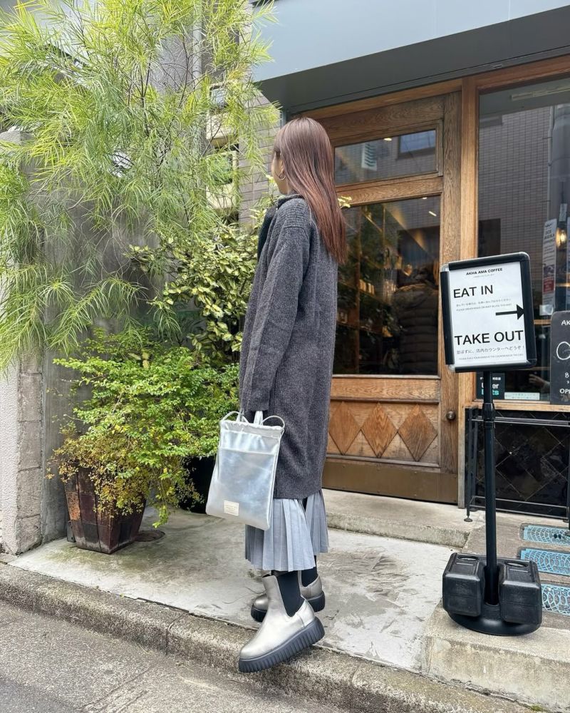 スリムなパンツやアウターと組み合わせることで、都会的なスタイルが楽しめます。