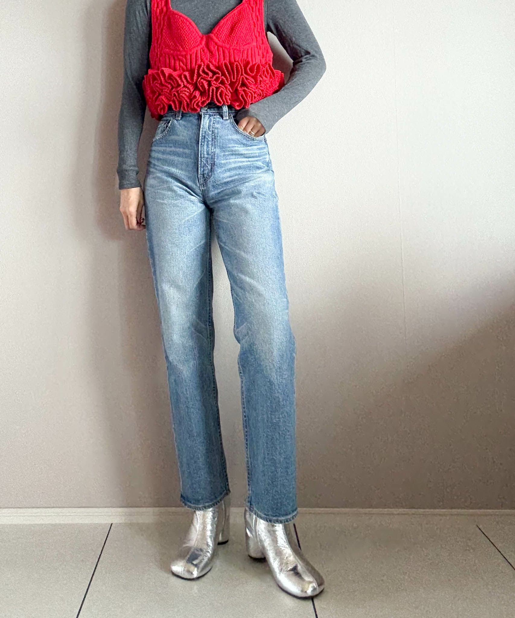 ショートブーツの丈感が、デニムやパンツにぴったりフィットし、シンプルでありながらもおしゃれな印象を与えます。