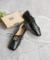 クラシカルなバレエシューズに“レースアップ”と“スクエアトゥ”を組み合わせたデザインが特徴です。