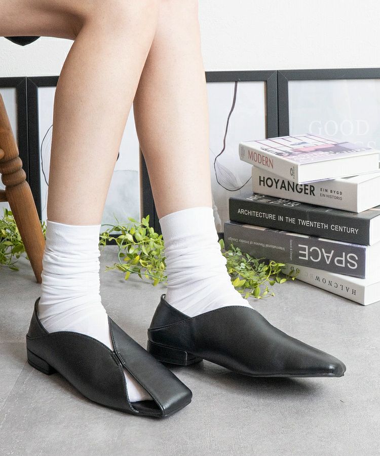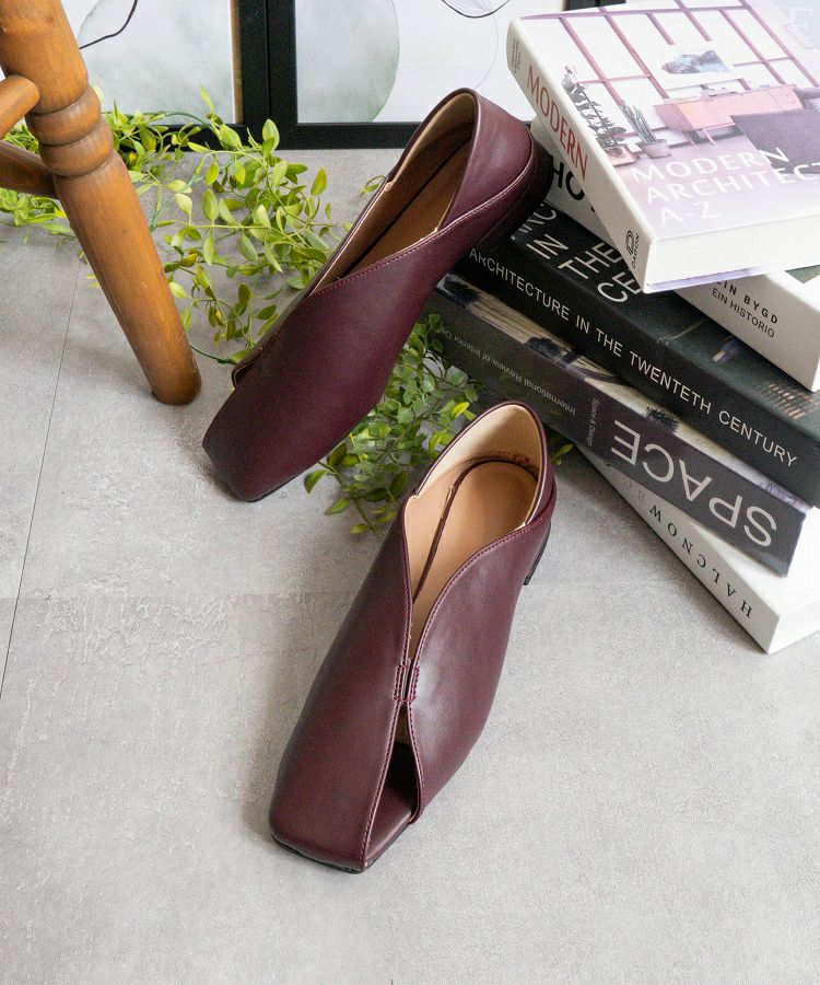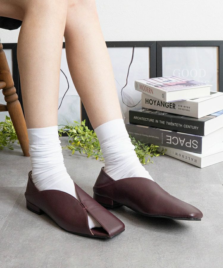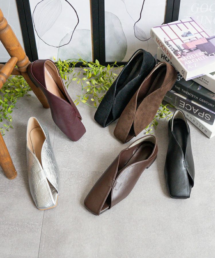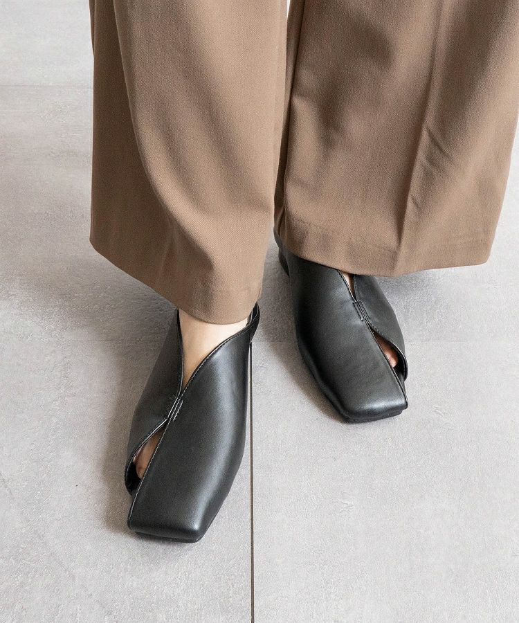 スクエアトゥは、足元に程よいボリューム感が出るので、甘くなりすぎず、モードっぽさや洗練感をプラスしたいときにぴったりです。