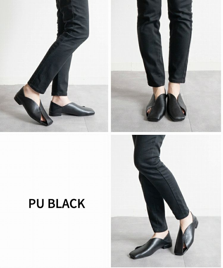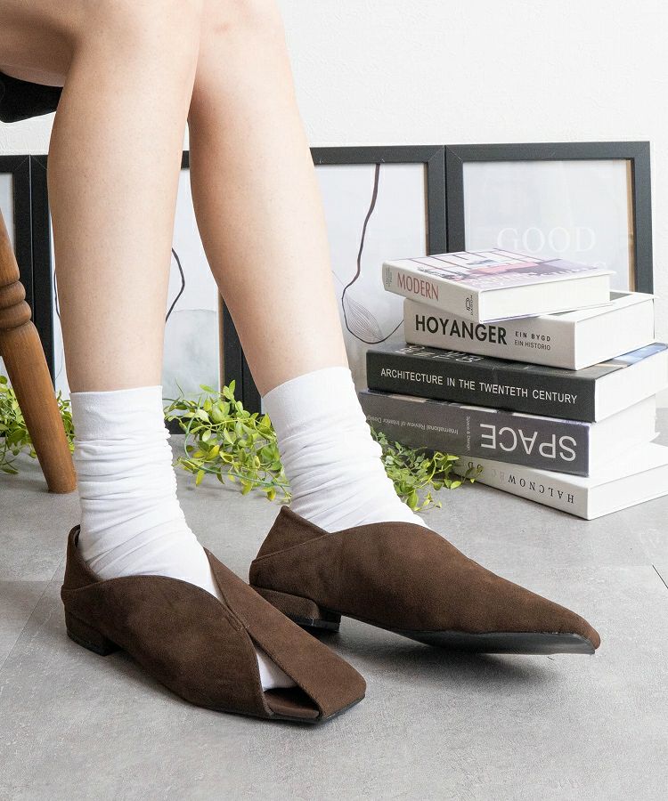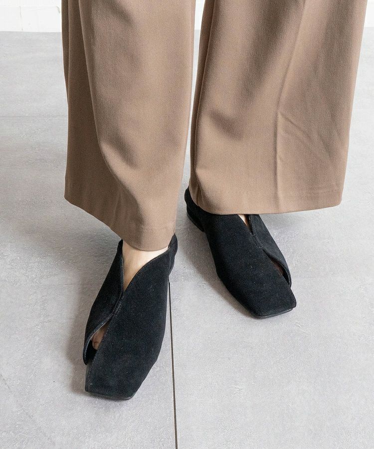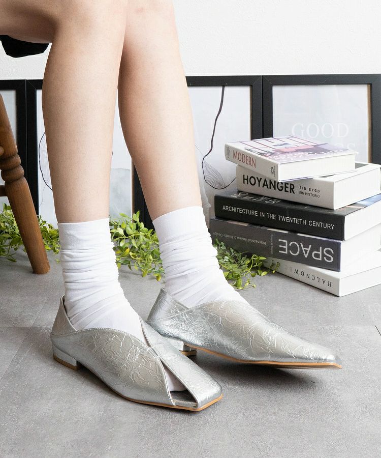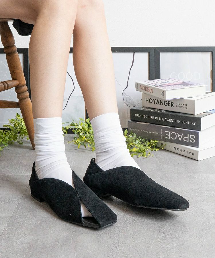 スクエアトゥは、足元に程よいボリューム感が出るので、甘くなりすぎず、モードっぽさや洗練感をプラスしたいときにぴったりです。