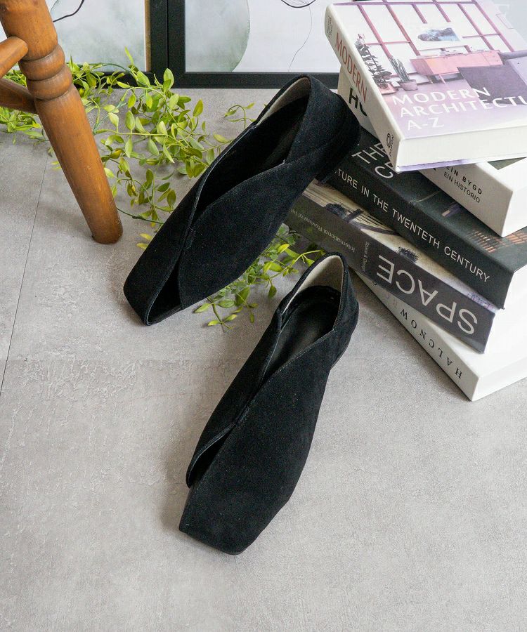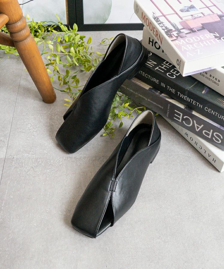 アシンメトリースクエアトゥパンプスは、「ちょっとひねりが欲しいとき」に頼れる一足。