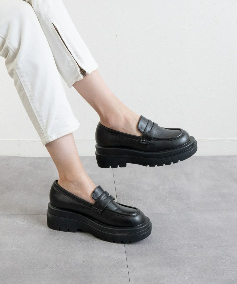 通常のローファーよりも厚みのあるヒールが特徴で、歩きやすい★