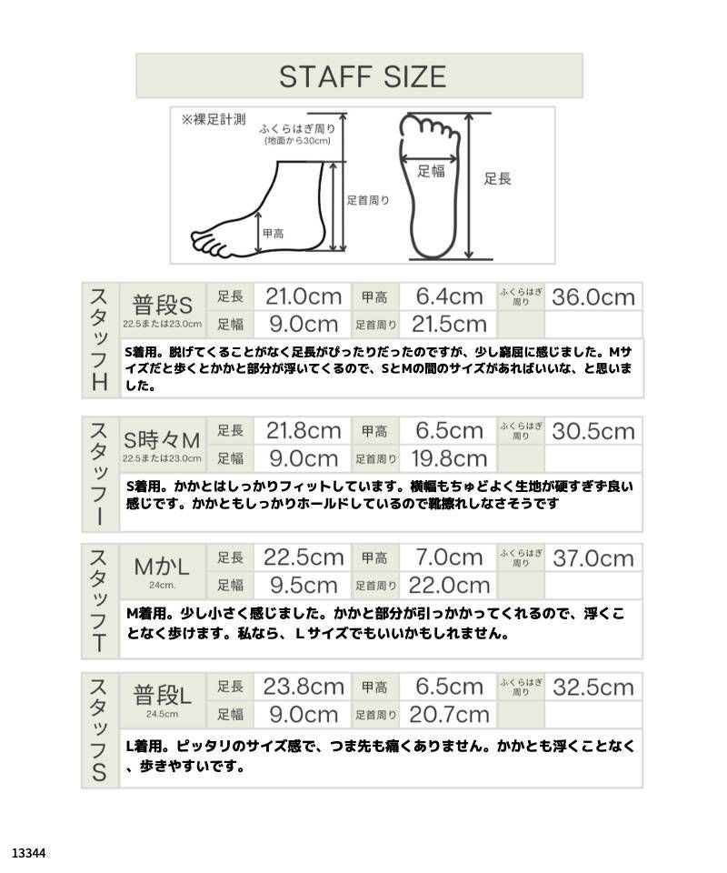 サイズ S (22.5~23cm) / M (23.5~24cm) / L (24.5~25cm)