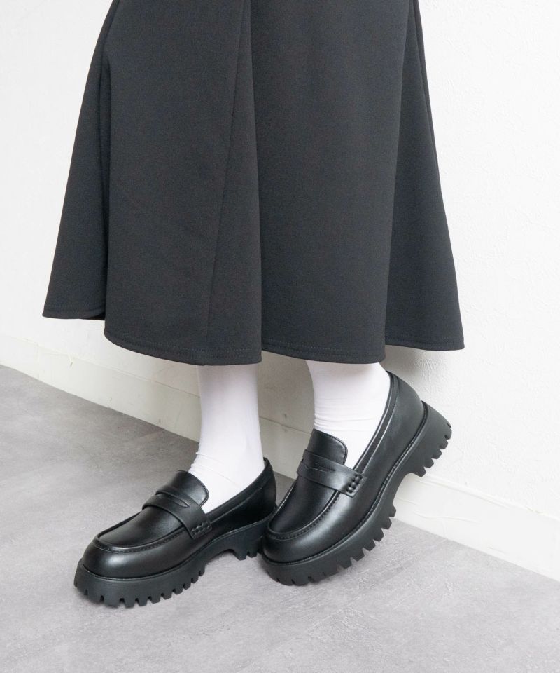 足元に程よいボリューム感をプラスしてくれる、トラックソールデザインのローファー。