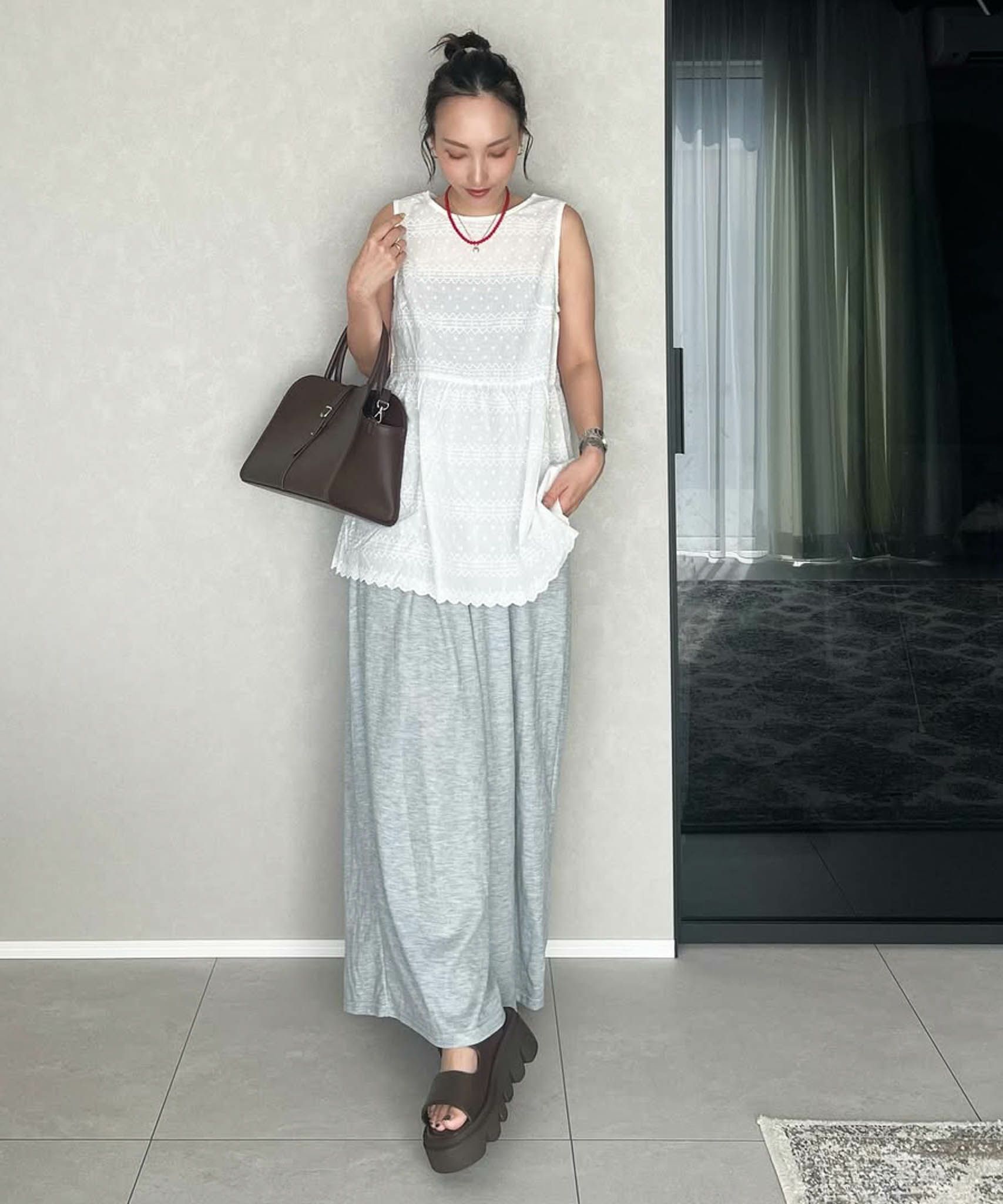 あえてキレイめボトムと合わせるのが今っぽい。
