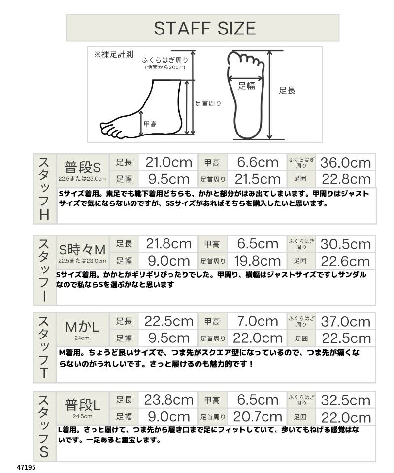 サイズ S(22.5~23cm) M(23.5~24cm) L(24.5~25cm)
