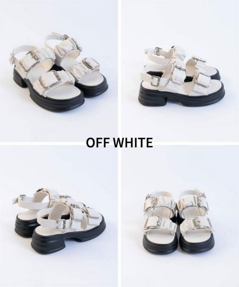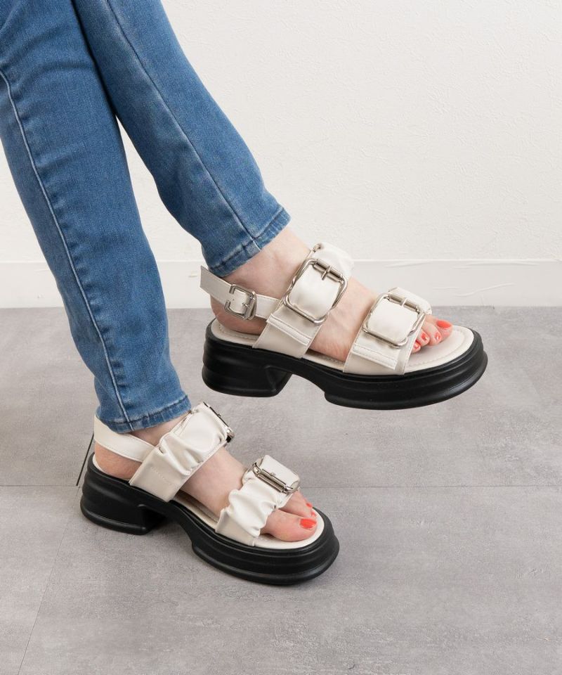 【厚底ギャザー2ベルト金具サンダル】