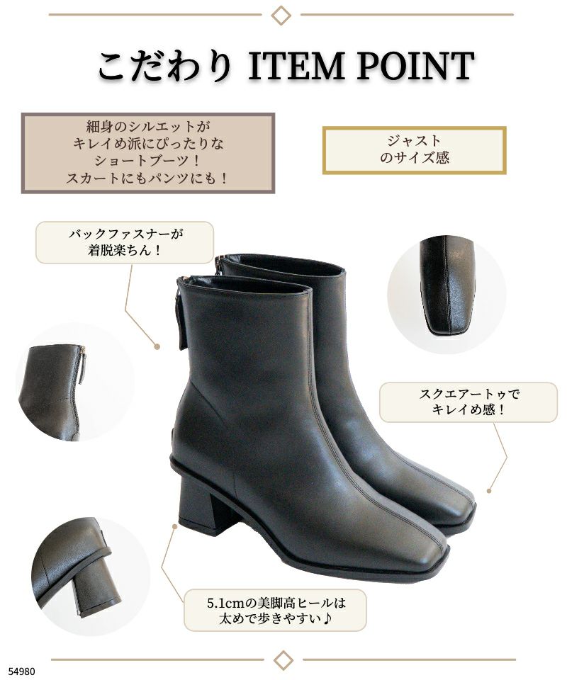 【スクエアトゥヒールブーツ】