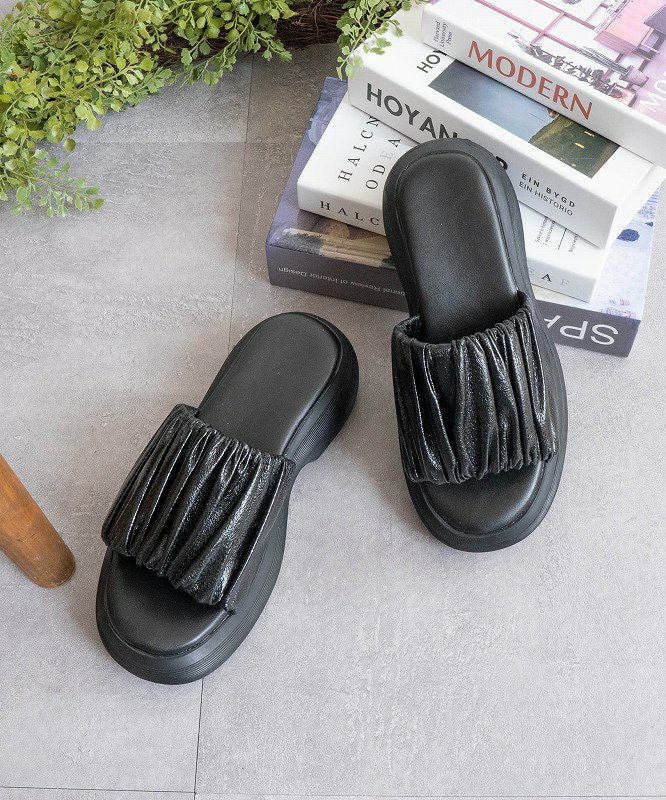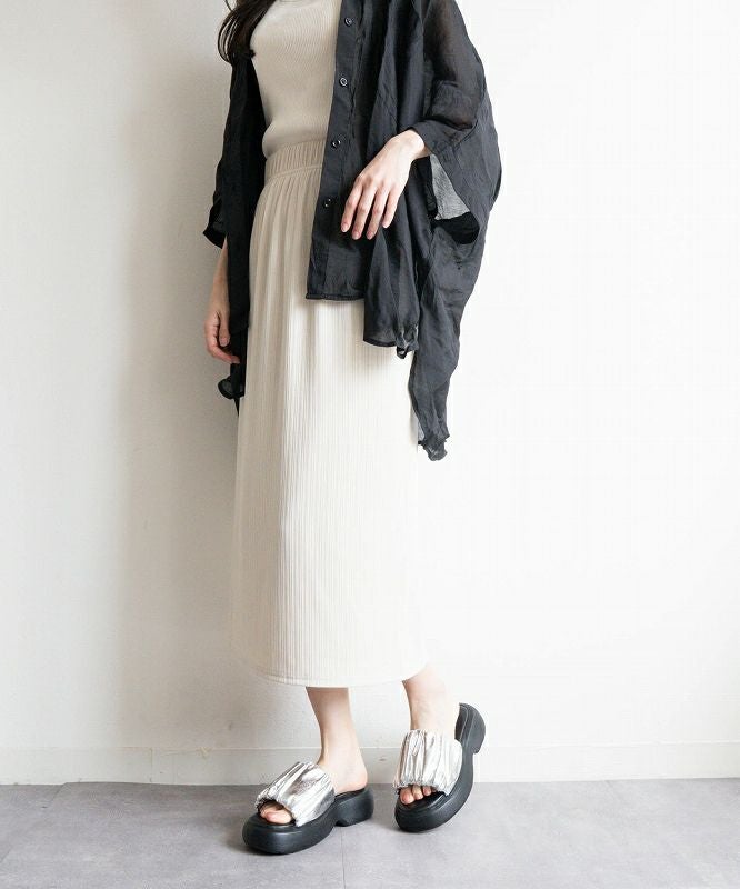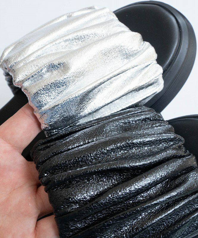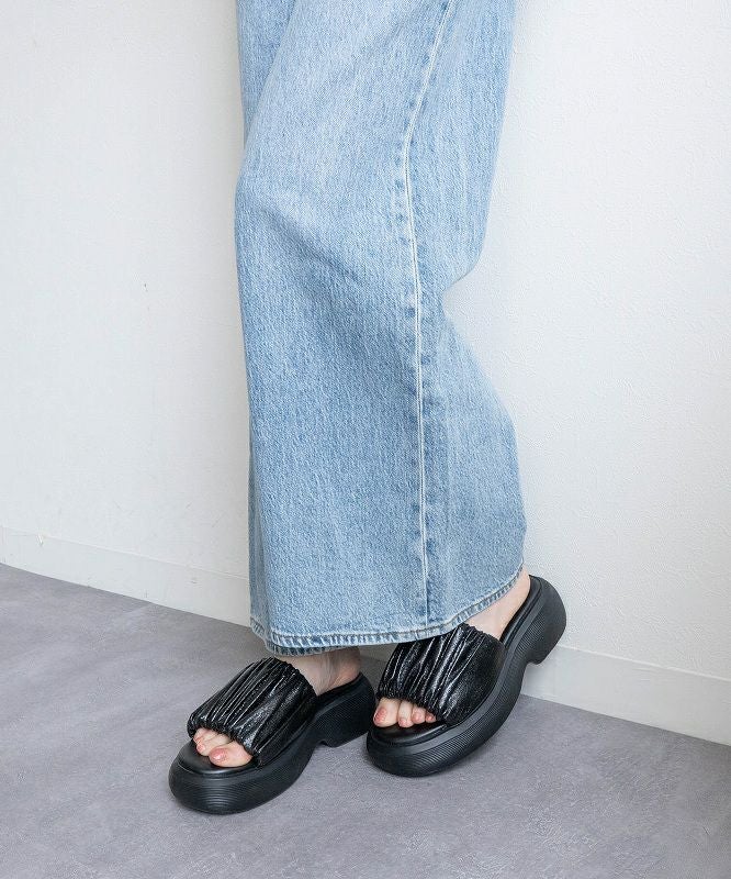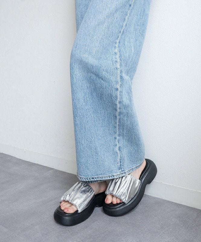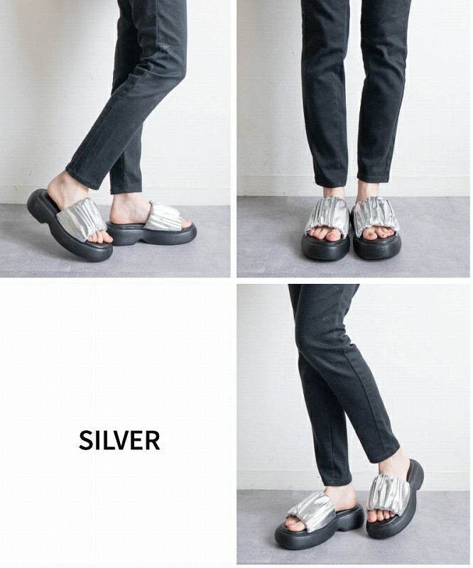 【厚底ラウンドボリュームギャザーサンダル】