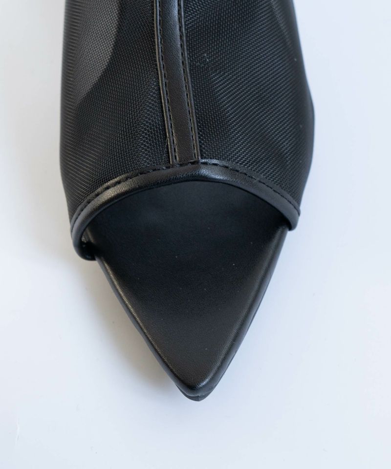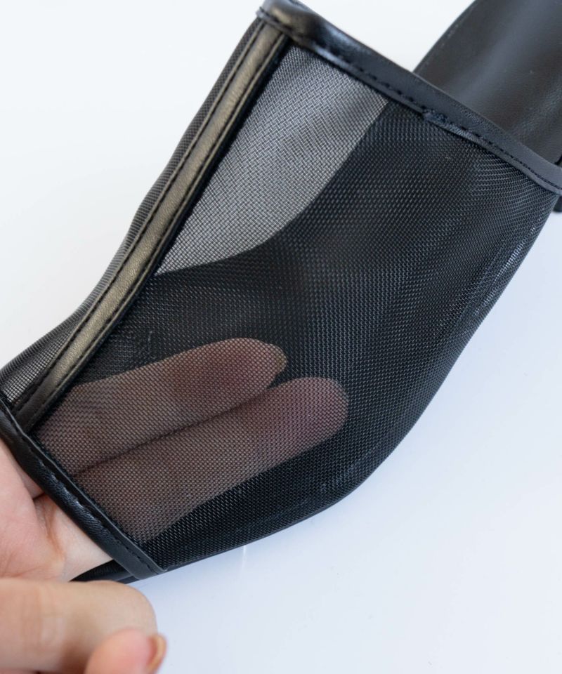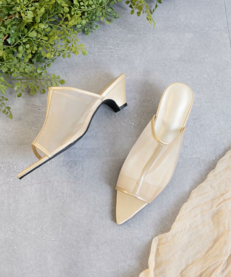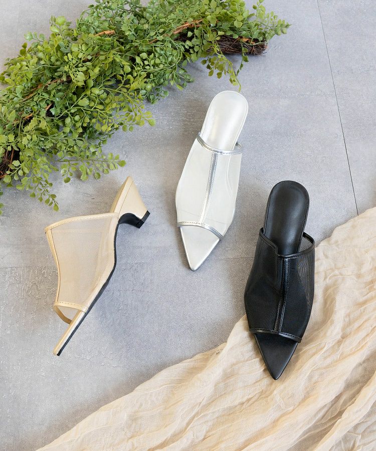 透け感のあるメッシュやネット状の素材を使用しており、足元に軽やかな印象を与えつつ、季節感を演出します。