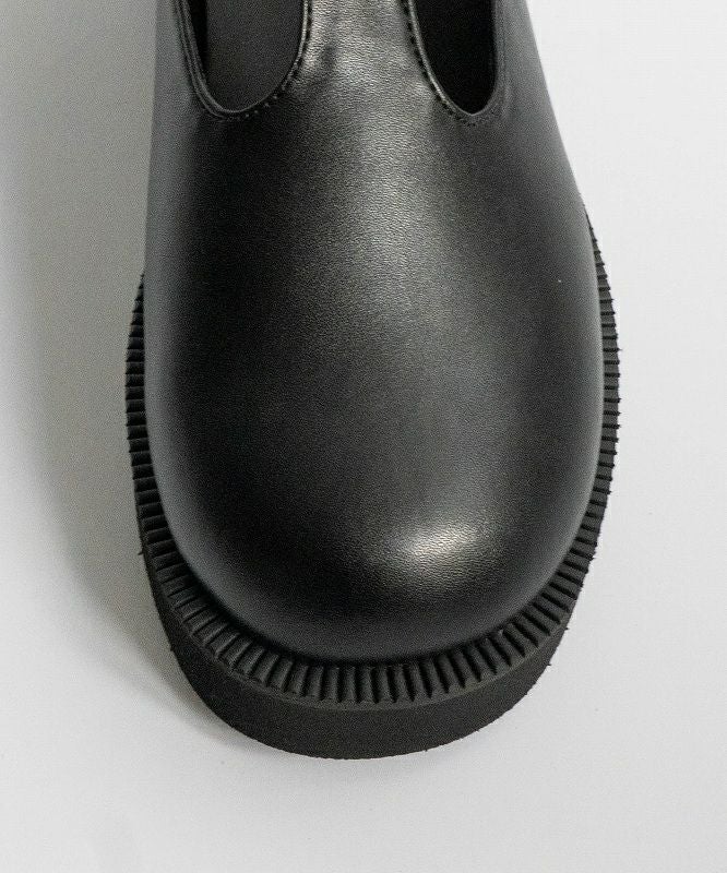 甲を覆うすっきりとしたフォルムに、T字型のストラップとバックルを効かせたクラシカルなルックス。