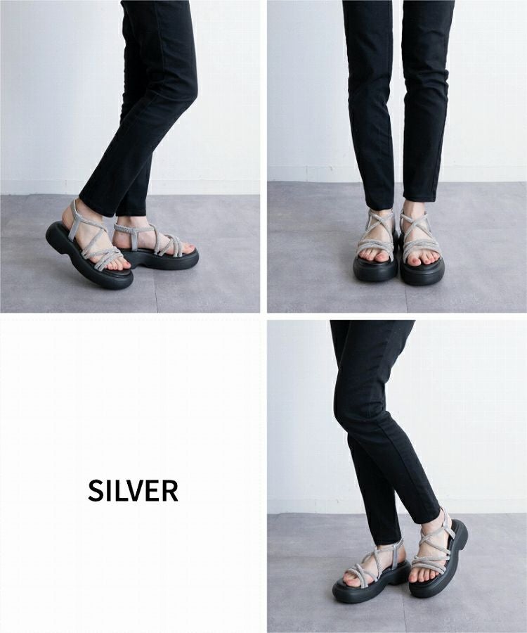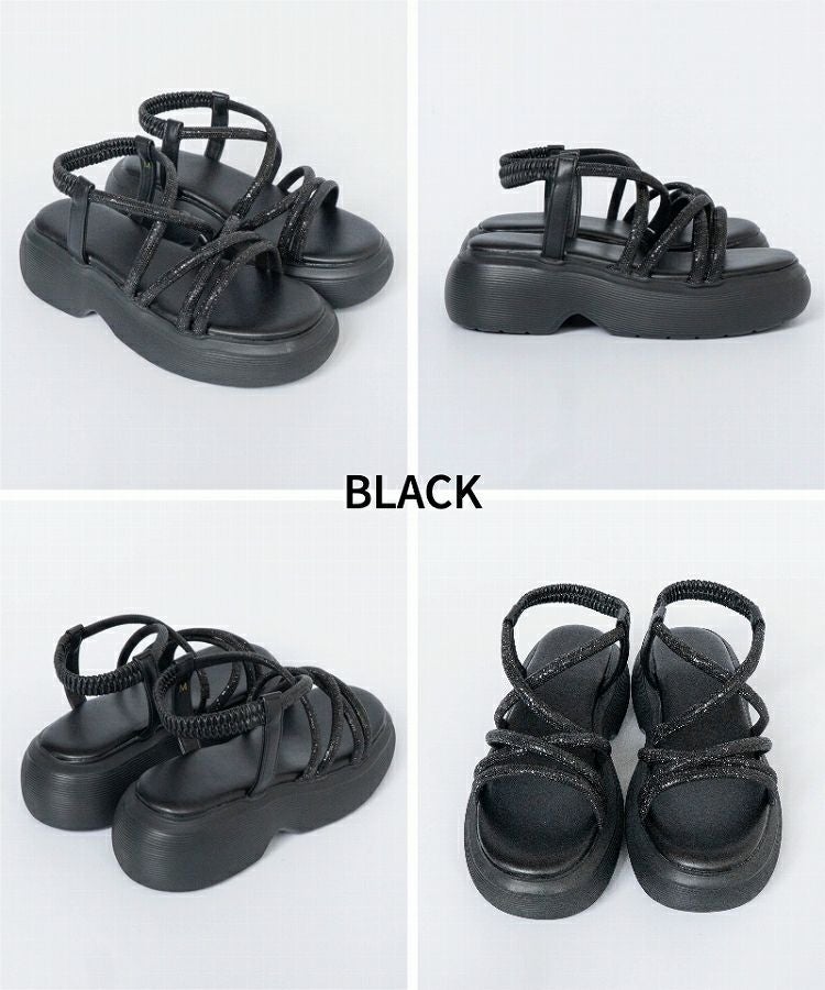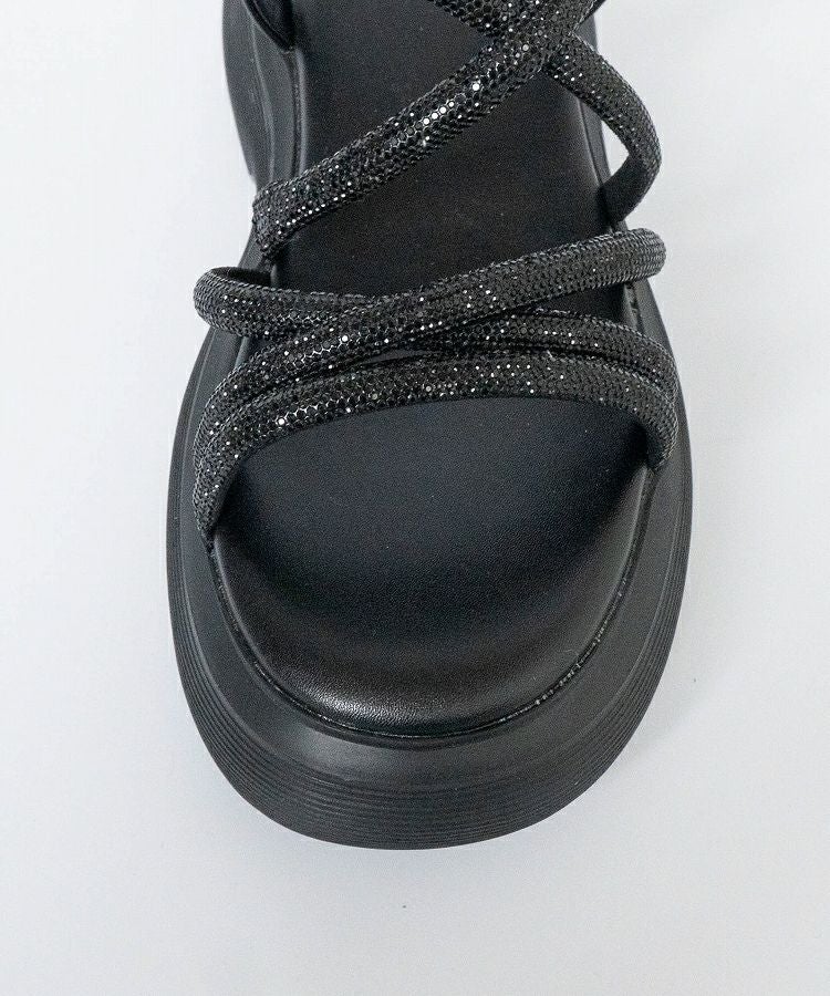 【厚底ラウンドコンフォートラインストーンサンダル】