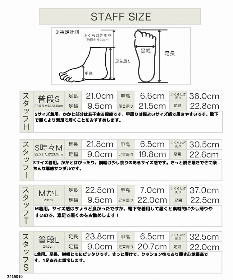 サイズ S(22.5~23cm) M(23.5~24cm) L(24.5~25cm)