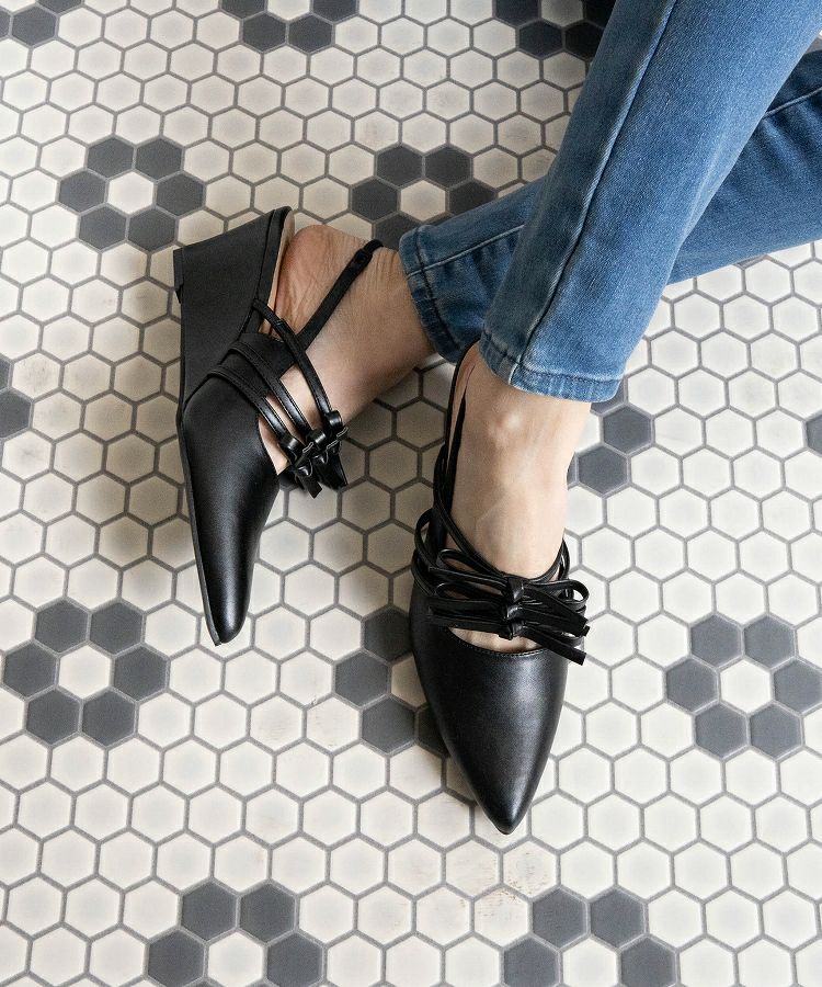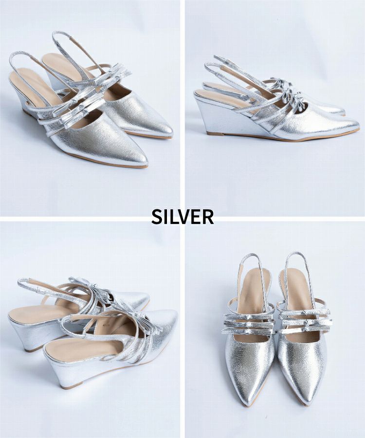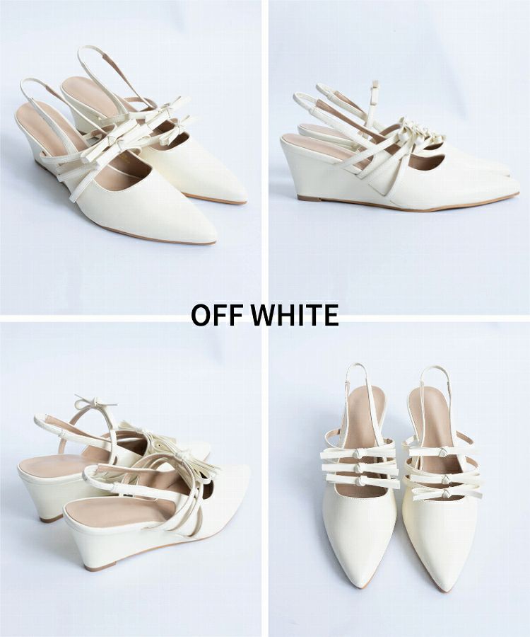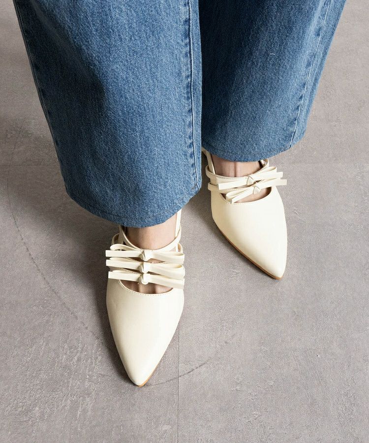 【ポインテッドリボンウエッジミュールサンダル】